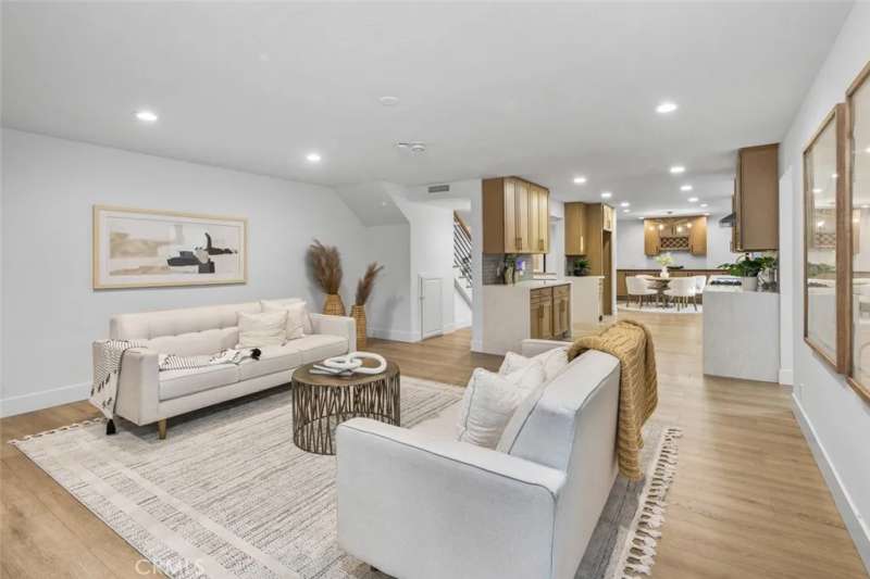 Introducing an Exquisitely Renovated Residence Near Huntington State Beach. Presenting this exceptional home, newly and comprehensively updated and situated on a serene, low-traffic interior street. This property is not merely close to the coast; it is positioned just minutes from the renowned Huntington State Beach, offering unparalleled access to the California coastline. The residence has undergone an extensive remodel, now featuring a superb, newly completed kitchen. This culinary space boasts refined white cabinetry and elegant quartz countertops and backsplash. Furthermore, the home is ideally designed for sophisticated hosting, offering two distinct and spacious entertaining areas perfect for receiving family and and guests with grace. Featuring uncompromising design and a truly enviable location. A focal point of the formal living room is the stunning bay window, an ideal setting for quiet daytime contemplation or relaxing evenings warmed by the fireplace. The guest bathroom has been transformed into a showpiece, featuring new, contemporary tile and custom glasswork, showcasing the level of detail applied throughout the renovation. All bedrooms are generously proportioned, ensuring maximum comfort and versatility for families. The exterior grounds offer a private sanctuary, featuring professionally maintained landscaping accented by mature fruit trees and bushes. This is a truly rare offering. The property stands ready for a discerning new owner to immediately establish a legacy of their own in this prime coastal locale. Seize this opportunity to acquire a turnkey h