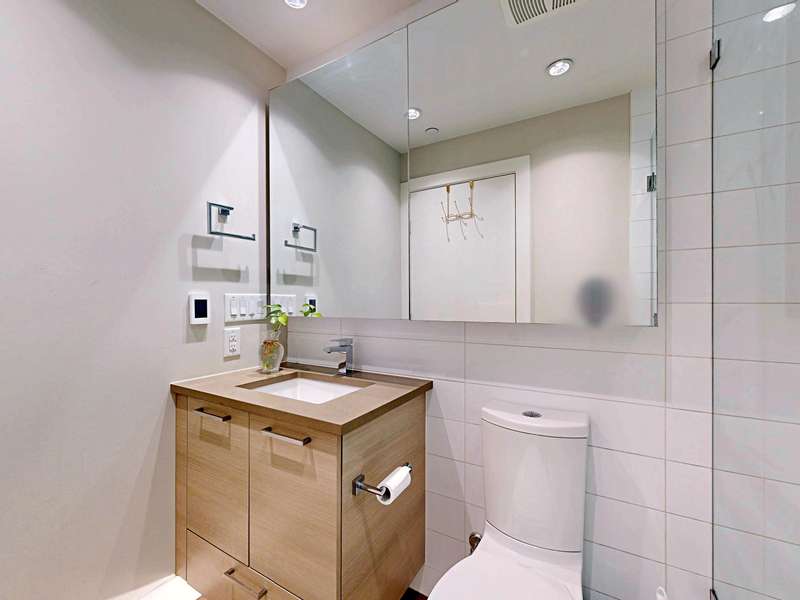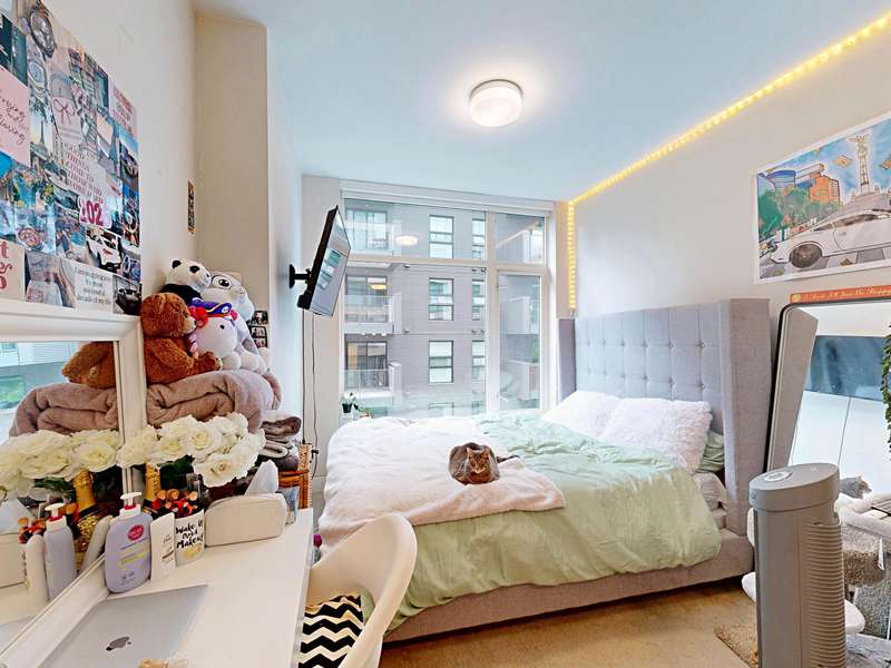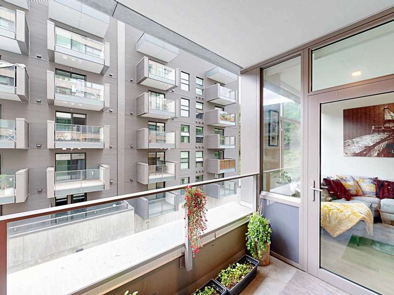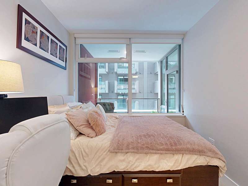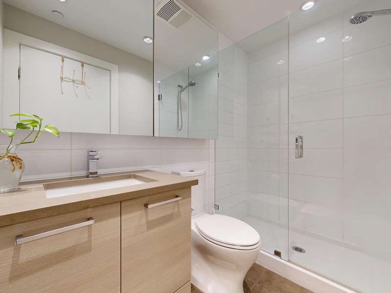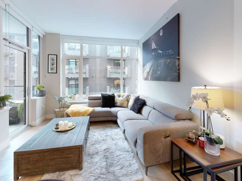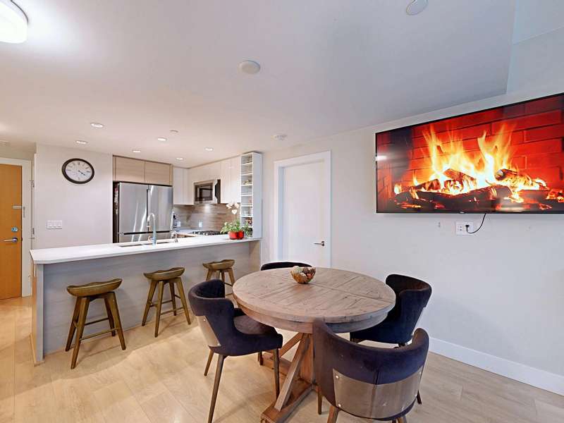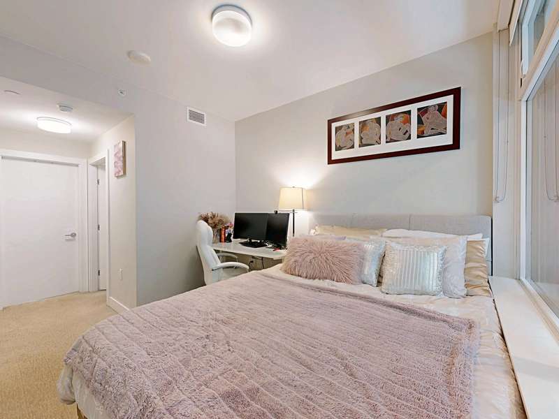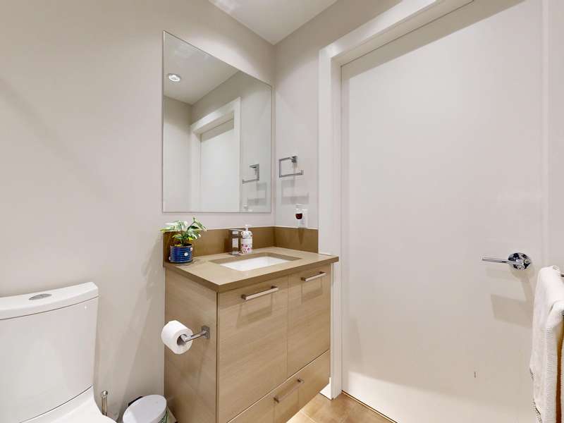 Quartet at River District. A CONCRETE 2 bed 2 bath, 5 year old, 868 square foot Condo available for a great price. Air Conditioning through your own heating and cooling pump is included with this unit and is covered in the monthly maintenance fee. This unit is in great condition and comes with wide plank flooring, quartz countertops, stainless appliances and a gas range. A great size kitchen and open layout leads you to the spacious patio, a great place to entertain. Great separation comes from large bedrooms on opposite sides of the unit, each with their own ensuite bathrooms. The primary bedroom comes with a large walk-in closet and gorgeous bathroom. You have access to a fantastic exercise facility with pool, hot tub, sauna, gym, squash courts.