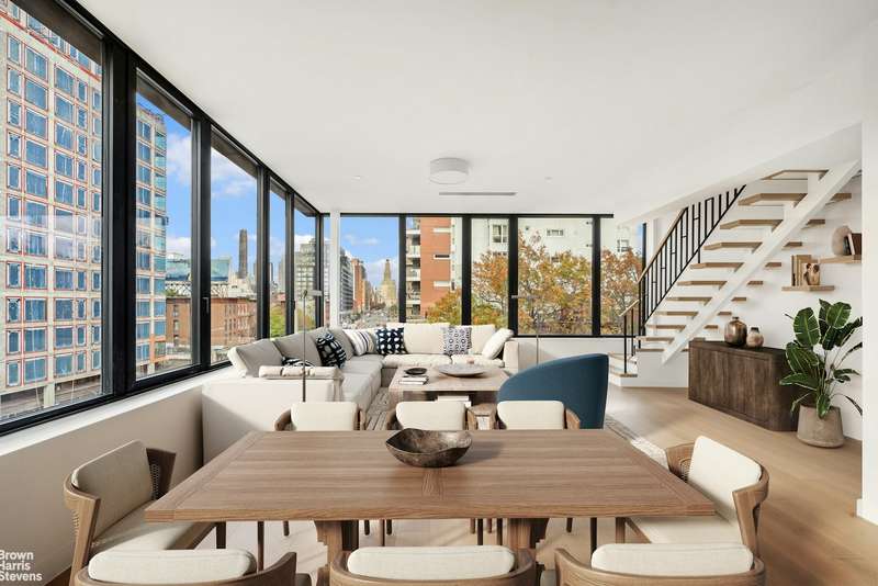 Welcome to PH8D at 251 1st Street, a breathtaking penthouse designed by ODA that blends contemporary design with unparalleled craftsmanship. This expansive three-bedroom, 2.5-bathroom residence features an impressive 1,669 SF interior floorplan, sophisticated finishes, two spacious terraces and panoramic south facing views through floor-to-ceiling glass windows, allowing abundant natural light to fill the space. With 9'4" ceilings, every room feels open and airy, offering a perfect balance of style and function in one of Brooklyn's most sought-after neighborhoods.