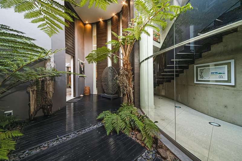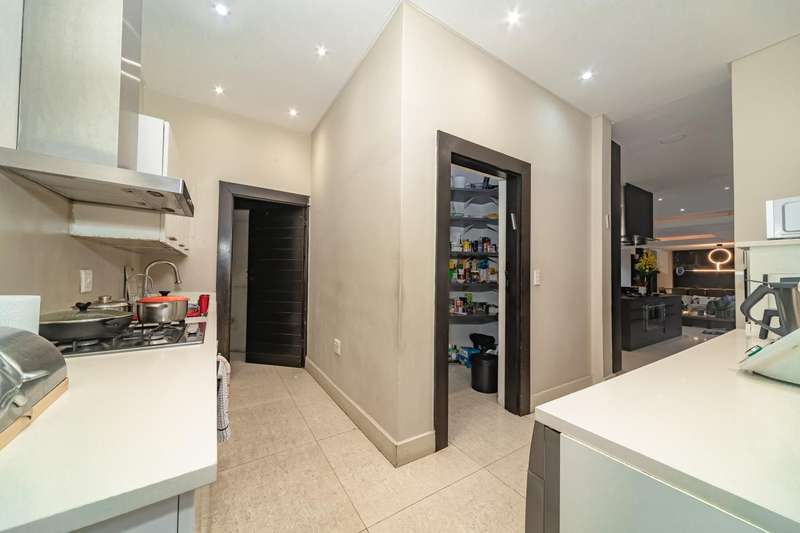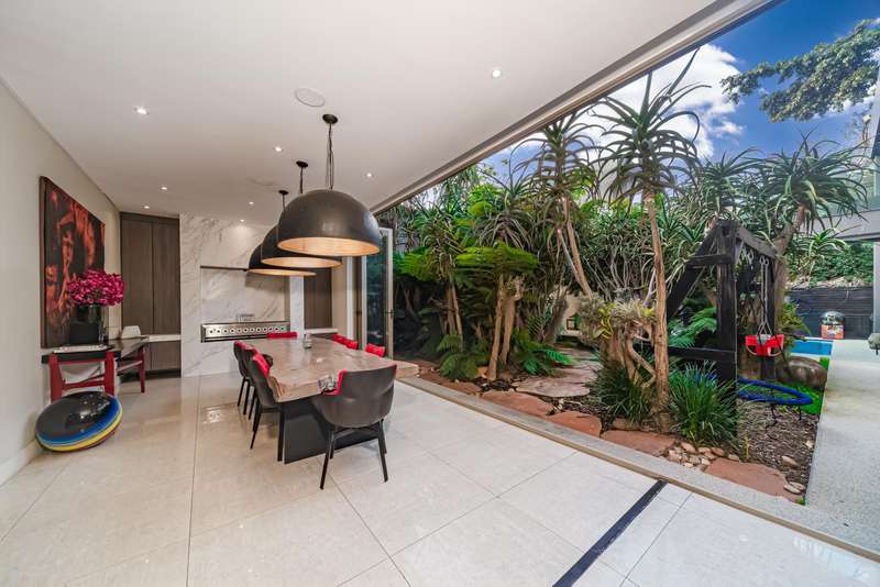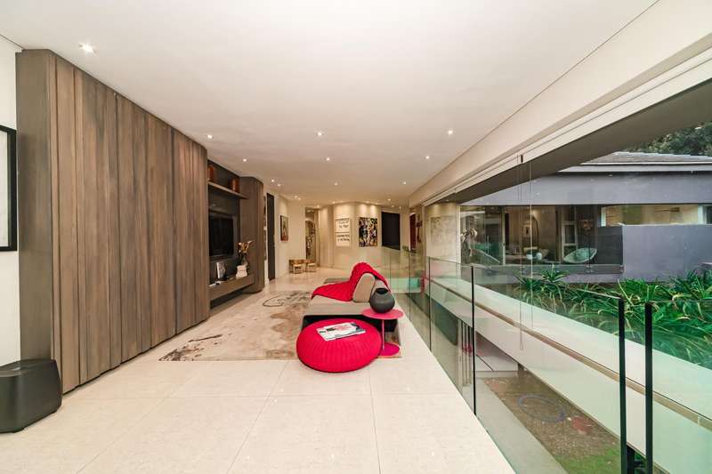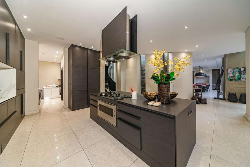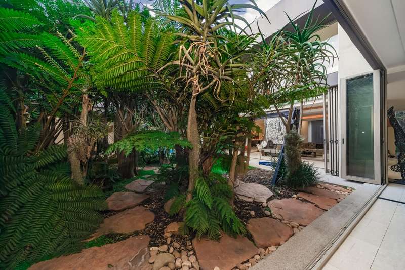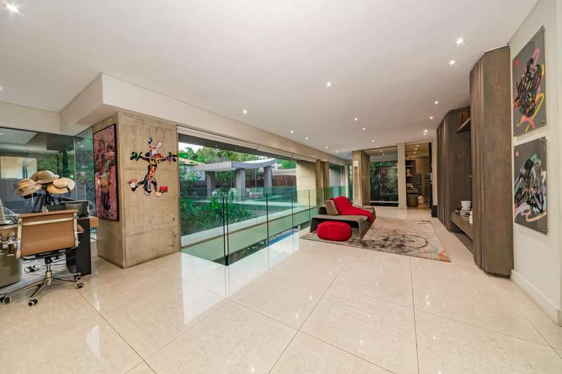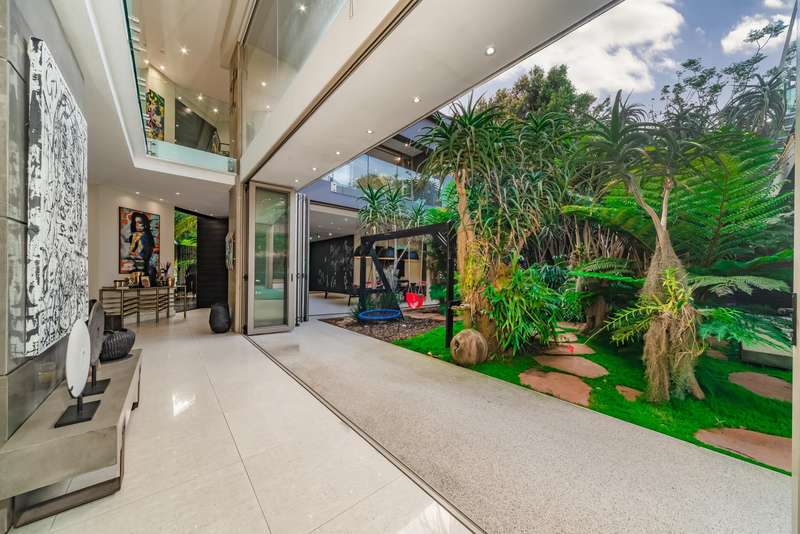 A Connoisseur?ÇÖs Masterpiece. Sophisticated. Future-Forward. Step inside a residence that?ÇÖs not just a home, but an experience. Hidden within an elite, ultra-secure estate, this architectural jewel is for the tastemaker who demands more than ordinary luxury. It?ÇÖs for the collector of bold design, rare art, and uncompromising sophistication. From the moment you enter the dramatic double-volume hall, you?ÇÖre transported into a world where concrete, glass, and steel melt together with decadent detail. The interiors are curated with fearless flair. Think Jean-Paul Gaultier wallpaper, walls that drip with world-class art, and design that looks like it?ÇÖs been plucked from the future. This is a house with attitude. Sensual. Sleek. Unapologetically stylish. Highlights That Set It Apart: ?Çó Atrium garden. Lush, manicured greenery at the heart of the home, visible from nearly every room ?Çó Designer gourmet kitchen. Integrated Gaggenau and SMEG appliances, breakfast bar, scullery, and laundry ?Çó Entertainment nirvana. Sunken lounge, dining space, and play area flow seamlessly into the landscaped garden ?Çó Indoor-outdoor living. Stack-away glass doors, covered entertainer?ÇÖs patio, built-in gas braai, and heated pool with changeroom facilities ?Çó Work-from-home edge. Private office with natural light and views onto the garden ?Çó Floating staircase leading to the private bedroom wing Bedroom Wing: ?Çó Owner?ÇÖs suite. En-suite spa-style bathroom, dressing room, and serene garden views ?Çó Three additional en-suite bedrooms. Each sophisticated and spacious ?Çó Pajama lounge with direct access to a rooftop garden and patio with sweeping views Beyond the Expected ?Çó Rooftop garden sanctuary for sun-downers or quiet retreats ?Çó Two staff suites. Double garage plus secure off-street parking ?Çó Energy independence. GreenSun solar system with 60 kW battery storage, 28 panels, plus a 50 kVA generator ?Çó Borehole and 5000L backup water system. Continuous supply, always ?Çó Fort Knox Security ensures ultimate peace of mind ?Çó Bespoke craftsmanship everywhere. Custom cabinetry, Oggie hardwood floors, integrated sound system, air-con throughout The Vibe: This isn?ÇÖt a cookie-cutter luxury home. It?ÇÖs a connoisseur?ÇÖs playground, a property dripping with artistry and swagger. Sophisticated yet daring. Futuristic yet timeless. If you believe your home should be as sexy and distinctive as your lifestyle, then welcome?Ǫ you?ÇÖve found it.