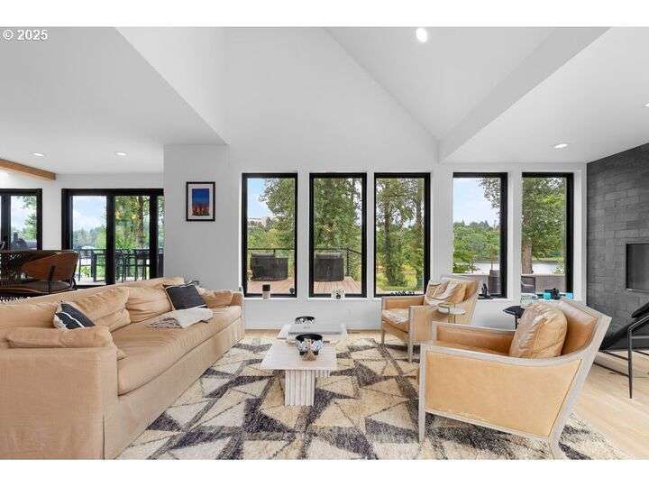 Luxury Riverfront Oasis. Call to ask about our lease opportunity $9,900- $11,000 per month. Experience the ultimate in Pacific Northwest waterfront living with this opportunity on the Willamette River. Situated on just under two park-like acres in Clackamas County and within the highly sought-after Lake Oswego School District, this property is a dream retreat for entertainers and waterfront enthusiasts alike. Designed for gatherings and everyday luxury, the home features an open-concept layout with a gourmet kitchen, breakfast bar, great room, and dining area — all oriented toward the river and pool for seamless indoor-outdoor living. Beautiful white oak floors grace the entry, kitchen, and great room, setting a warm and inviting tone. The main level includes two guest bedrooms, a full bath, and a flexible office/den (potential 5th bedroom). Upstairs, the primary suite is a true sanctuary, complete with electric skylight blinds, a private sauna, and a spa-inspired bathroom featuring an expansive walk-in shower, soaking tub, and Carrera marble finishes throughout. A bonus room or 4th bedroom completes the upper level. Step outside to your own riverside paradise — complete with a sparkling pool, manicured landscaping, and pilings already in place for the reinstallation of a dock (buyer to verify). There is also the option of a dock on the east side of the island as well. (buyer to verify). Whether you're boating, entertaining, or simply enjoying the serene surroundings, this home offers unmatched lifestyle potential. This is a rare chance to own one of Lake Oswego’s few estate-style riverfront homes with acreage, dock potential, and a luxurious entertainer’s layout.