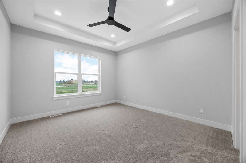 Fall 2025 completion* This Cove floor plan features 9' ceilings, 10' trey ceiling in the great room, a walk in pantry and a drop zone and large storage closet located right off the garage entry. There will be white painted trim, quartz countertops, soft close cabinetry and engineered hardwood throughout main living spaces. This is a split bedroom plan so off the kitchen will lead you to the primary suite with large walk in closet and dual sinks. The basement can be finished with an additional bedroom, rec room and bathroom. Sellers would consider a trade on this home. 10-Year builder warranty included. Contact agent for additional pricing and selections.