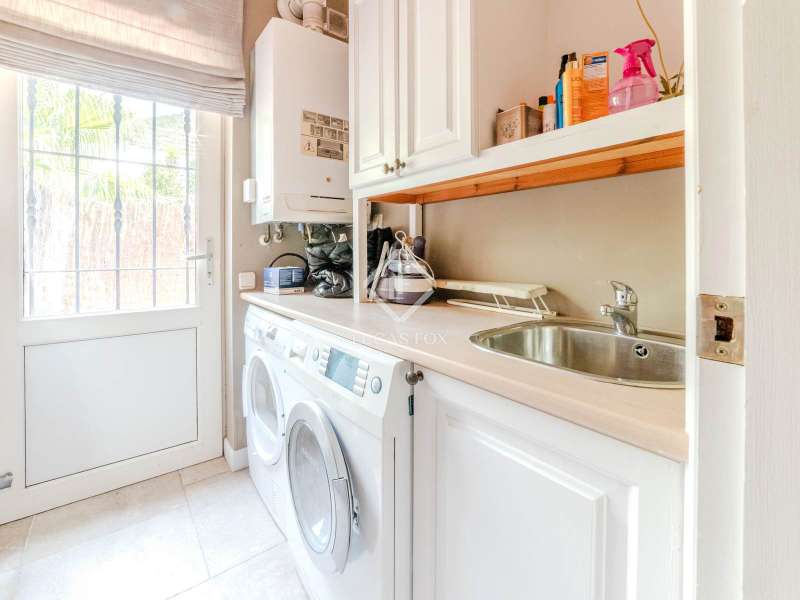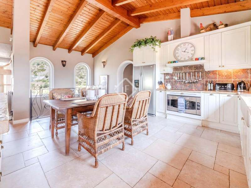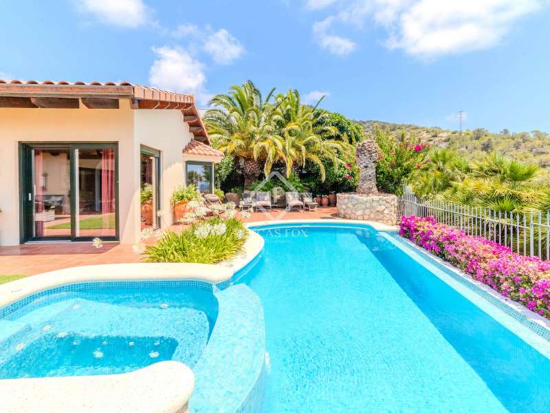 This beautiful villa for sale in Sitges has been built on the hillside in the secluded Monte Gavina residential area with stunning views of the sea, Sitges and Vilanova. Comprising of 5 bedrooms, a kitchen, living/dining area, 4 bathrooms and a spacious games room. Furthermore, the villa boasts air conditioning throughout and offers a 2-car garage. Stepping outside we find a wonderful private garden with a swimming pool and a large terrace where you can enjoy views of the Garraf Natural Park. An excellent family villa in a peaceful setting with lovely views.