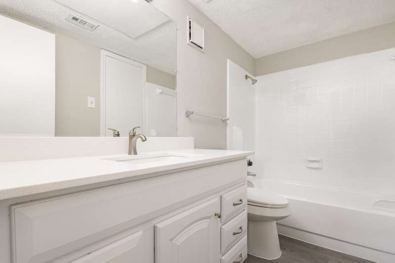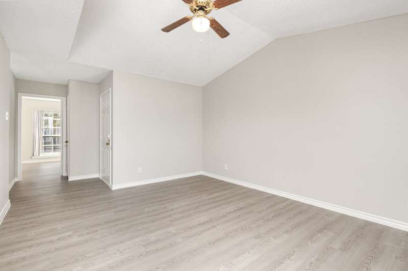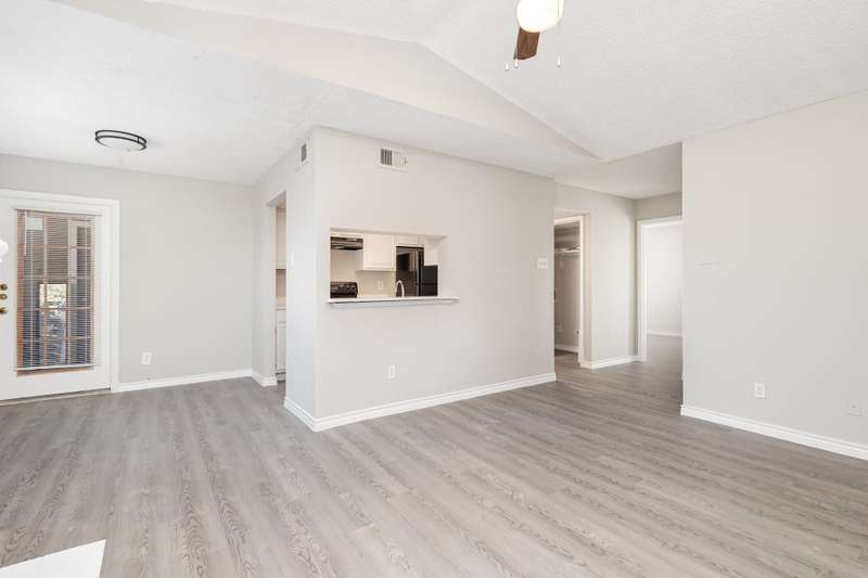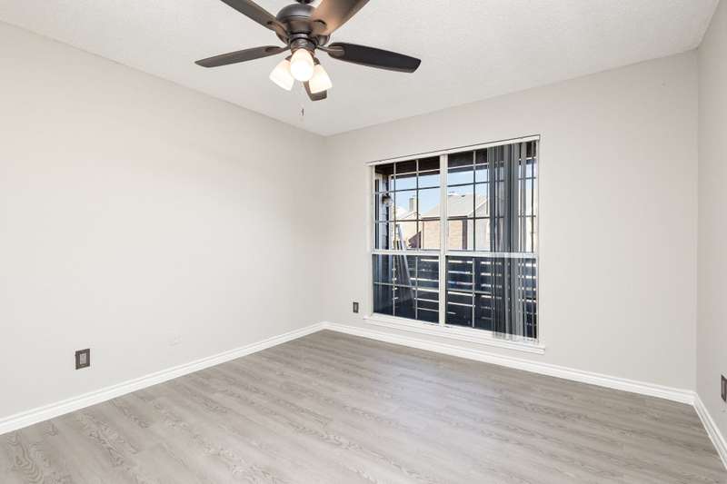 Classic Meadows upstairs two bedroom condominium just renovated with luxury vinyl plank flooring, new countertops in kitchen and baths, custom paint, fireplace, balcony, washer and dryer, reserved covered parking and located in a wonderful gated community with club house and pool.
