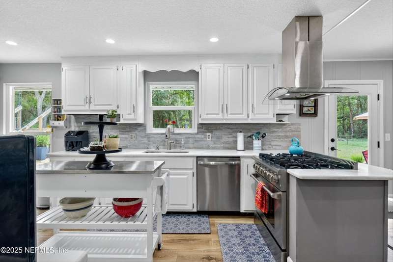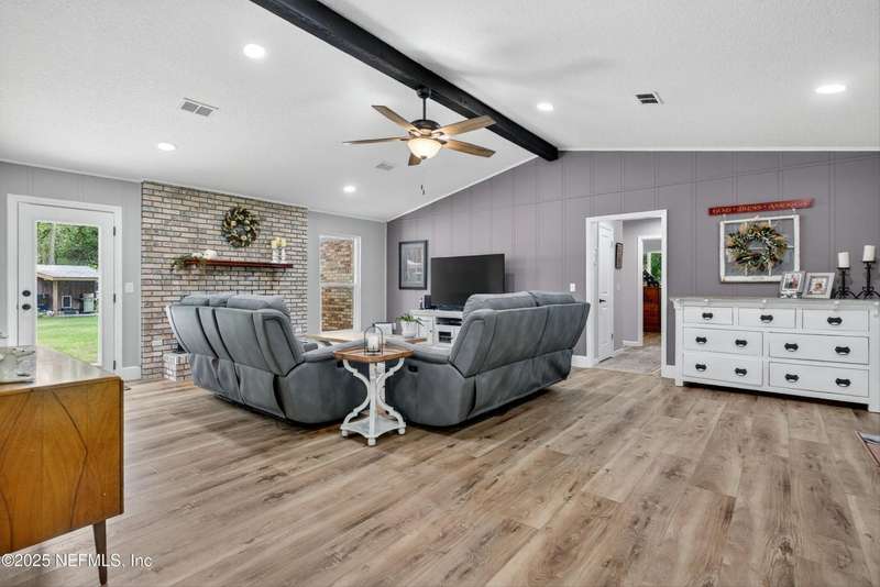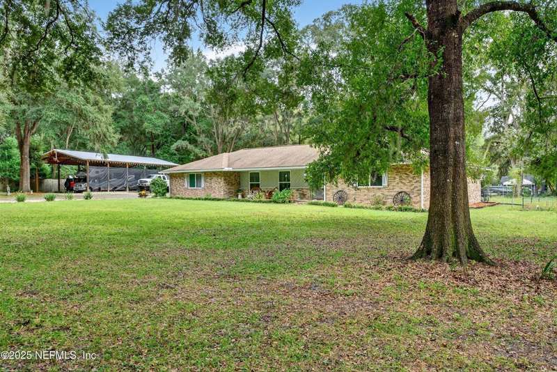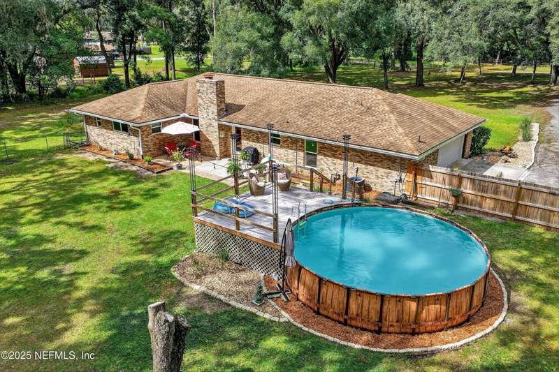 Discover country charm at its best with this beautifully maintained 3BR/2BA home on 4.55 acres in Clay County and no HOA! Featuring new windows, gutters, interior doors, and updated flooring. The inviting living room offers a wood burning fireplace while the kitchen features a gas range/oven for home cooked meals. Major updates include roof (2019), water heater (2025), and septic last pumped (2023). Outside, relax by the above ground pool, store your toys in the pole barn, and enjoy the fenced back acreage with plenty of room to roam. Drip irrigation with timer, saltwater softener on well, and storage shed complete this country retreat.
