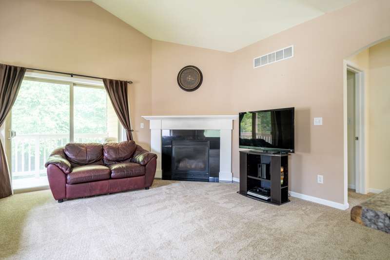Step into modern living in 2025 with this stunning second-floor condo, featuring updated carpeting, a private entrance and a spacious 2.5-car attached garage. Outside, enjoy a private covered balcony with breathtaking views of the 13-acre Braisure Woods Park, perfect for relaxing or entertaining. Inside, the open-concept layout is meticulously clean and welcomes you with soaring vaulted ceilings and abundant natural light. Spacious rooms offer tons of storage, including a spacious primary suite with a large walk-in closet and a private bathroom. Cozy up by the gas fireplace or enjoy the convenience of in-unit laundry, high-efficiency forced air furnace, and central A/C. Pet-friendly (2 pets allowed, one dog max, breed restrictions apply-see Executive Summary). Designed for comfort and connectivity, this home seamlessly blends style and functionality.