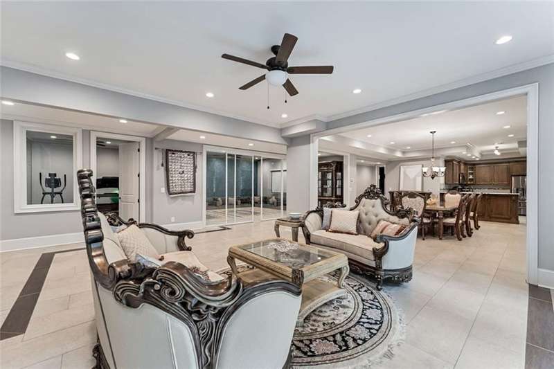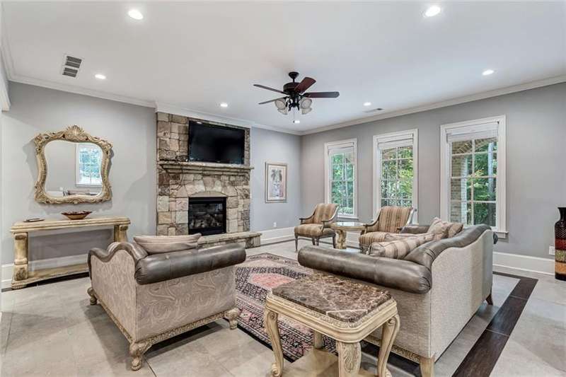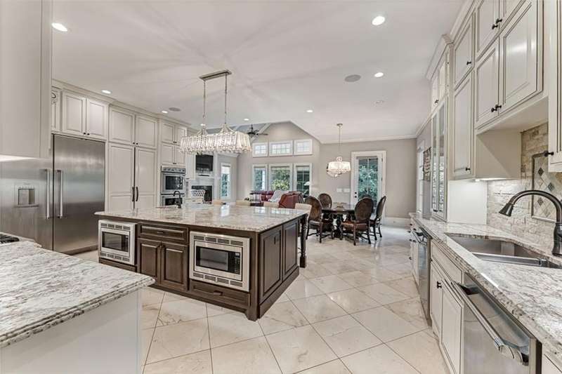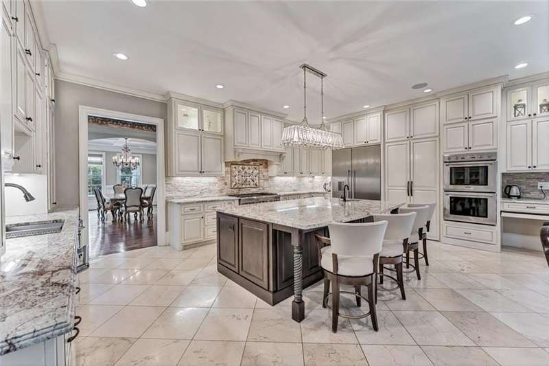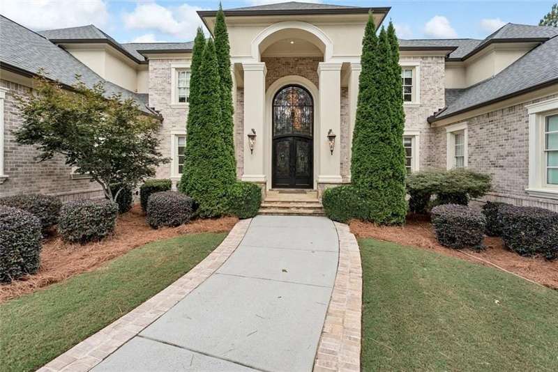 Spectacular newer estate overlooking the 17th green of prestigious Sugarloaf Country Club. This custom crafted masterpiece has magnificent curb appeal with its 10-foot iron doors and circular driveway with fountain. The impressive front doors open to an equally impressive interior. Palatial domes in the foyer and great room are adorned with stunning crystal chandeliers and highlight the circular staircase. The dining room is banquet-sized and appointed with a gorgeous-n-unique crystal chandelier. The H-U-G-E kitchen is the heart of the home with its over-sized island, beautiful cabinetry to the ceiling, high-end appliances, and coveted extra spacious pantry. The master suite is a haven away from the pressures of life with its own fireplace, sitting room, gorgeously appointed bathroom, and large two-sided closet. The home was specifically architected for multi-generational living with TWO FULL bedroom suites on the first floor, MULTIPLE master suites, and a handsome ELEVATOR that goes to all three floors. All the bedrooms are generously sized and one is completely handicapped accessible. The second floor has four of the bedrooms with ensuite bathrooms and walk-in closets, plus there is a second laundry room and an off-season storage closet. The terrace level is beautifully finished with a second kitchen, multiple seating areas, theatre room, exercise room, second study, and two large-n-luxurious bedroom suites for a total of 8 bedrooms. Multiple covered outdoor seating areas makes dining al fresco a dream. The home is located on a premium large lot with plenty of room for a pool, on a cul-de-sac, close to the gates. The icing on the cake is the FOUR CAR garage!