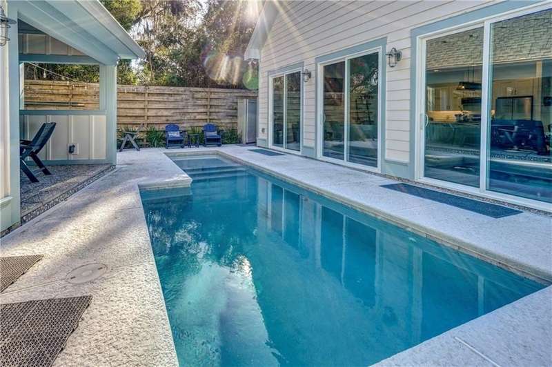 Discover island living at its finest in this stunning 4-bedroom, 4-bathroom custom-built home, completed in 2023 and perfectly positioned on the desirable south end of St. Simons Island. Thoughtfully designed, professionally decorated, and FULLY FURNISHED, this home offers the ideal blend of luxury, comfort, and convenience — just one mile from the beach and Pier Village. Step inside and experience the open, airy layout that seamlessly connects the bright living room, large dining area, and gourmet kitchen — the perfect setting for family gatherings or entertaining guests. The home’s modern coastal design and high-end finishes create a warm, inviting atmosphere that complements the island lifestyle. The spacious floor plan includes four beautifully appointed bedrooms and four full bathrooms, providing plenty of space for everyone. An additional HUGE BUNK ROOM (not included in the bedroom count) features two queen/twin XL bunk beds and one traditional bunk bed, comfortably sleeping up to 16 guests — perfect for large families or vacation groups. Step outside to your private backyard oasis, where indoor and outdoor living come together effortlessly. The heated and cooled pool ensures year-round enjoyment, while the pool house with half bath and outdoor shower add convenience and charm. Whether you’re lounging in the sun, dining al fresco, or taking an evening swim under the stars, this space was designed for relaxation and fun. This property has also proven to be a PHENOMENAL INVESTMENT OPPORTUNITY with over $110,000 in gross rental income in 2024 (its first year) and over $105,000 booked for 2025 and $24,594 already for 2026!. The home’s turn-key setup, exceptional amenities, attention to detail and prime location make it a Five Star performer on the rental market — or a dream escape for part time or full-time island living. NO HOA FEES. Located within minutes of the Coast Guard Station Beach, local shops, restaurants, and the charming Village, 134 Ibis Cove puts the best of St. Simons right at your doorstep. Whether you’re seeking a primary residence, second home, or income-producing vacation property, this coastal retreat truly has it all. Offered fully furnished and move-in ready — just bring your toothbrush and start living the island life!
