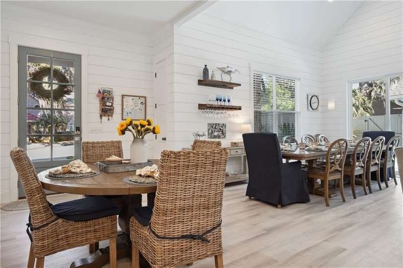 Welcome to this beautifully designed 4-bedroom, 4-bathroom gem, built in 2023 and perfectly situated on the desirable south end of St. Simons Island. Whether you're seeking a full-time residence, a second home, or a vacation rental, this property offers the ideal floor plan for any lifestyle. Fantastic rental history!! Step inside to an open, airy layout that seamlessly blends indoor and outdoor living, with a spacious living area that flows effortlessly into the stunning pool and pool house. This gorgeous pool features both heating and cooling options, ensuring year-round comfort no matter the season. The pool house includes a convenient half bath, while the outdoor shower provides the perfect spot to rinse off after a refreshing swim. The pool area is a true oasis, offering a perfect spot to relax or entertain, with ample space for lounging, dining, and enjoying the gorgeous coastal climate. The design emphasizes a seamless connection between the home’s interior and the beautiful outdoor spaces. The open floor plan allows a large group to enjoy relaxation and dining together comfortably! This stunning home offers 4 spacious bedrooms and 4 well-appointed bathrooms, providing plenty of space and comfort for all guests. In addition, there’s an additional HUGE BUNK ROOM (not counted in bedrooom count) featuring 2 queen/twin XL bunk beds, and an additional traditional bunk bed, allowing the property to comfortably sleep and seat/host up to 16 people. With its impressive layout and generous accommodations, it’s perfect for any size group. The property’s rental history speaks for itself, with over $110,000 in gross rental income in 2024 which was its first year. Already, it’s off to a great start for 2025 with over 102,000 in bookings secured to date! Rental information for 2025 is in attachments. This home is located just one mile from both the beach and the charming village, making it easy to enjoy the best of island life—whether you're soaking up the sun, exploring the local shops and dining spots, or enjoying evening strolls along the ocean. 134 Ibis Cove is a mile from the Coast Guard Station Beach and the Village. Being sold fully and beautifully furnished, this home is truly turn-key—just bring your toothbrush and start enjoying everything St. Simons Island has to offer!