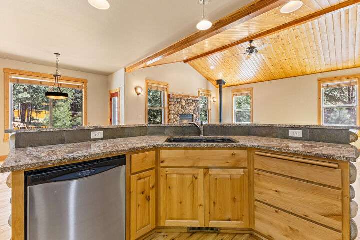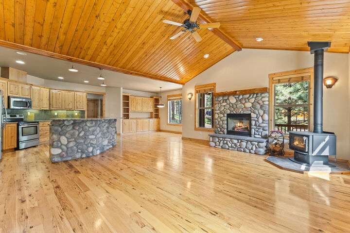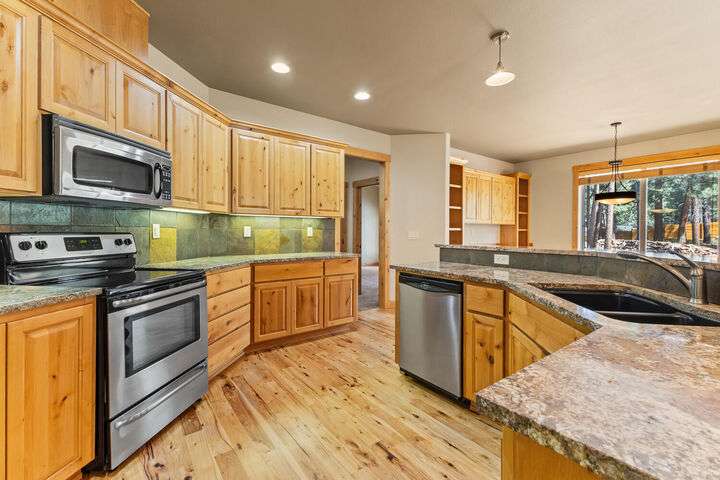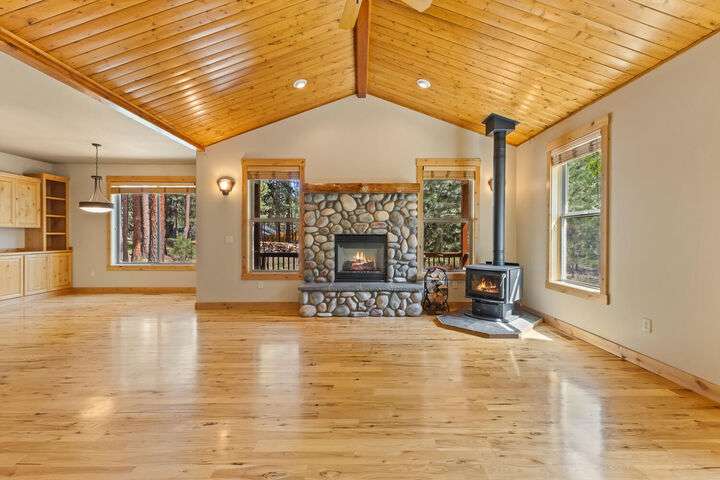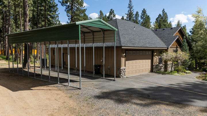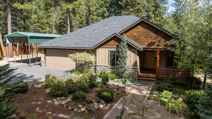 This inviting 3 bed, 2 bath home sits on 1.03 private acres less than 30 minutes south of Bend and minutes from Sunriver. Mature trees in the back and a beautifully landscaped front yard create a serene setting. Inside, enjoy raw edge granite countertops, a propane fireplace, and a wood burning stove, perfect for cozy nights. Recent updates include a new roof, heat pump, and carpet throughout. With a private well and well maintained septic system, this home offers both comfort and self sufficiency. Whether you're seeking a full time residence or a peaceful escape close to all that Central Oregon has to offer, this property delivers space, charm, and move in ready convenience.