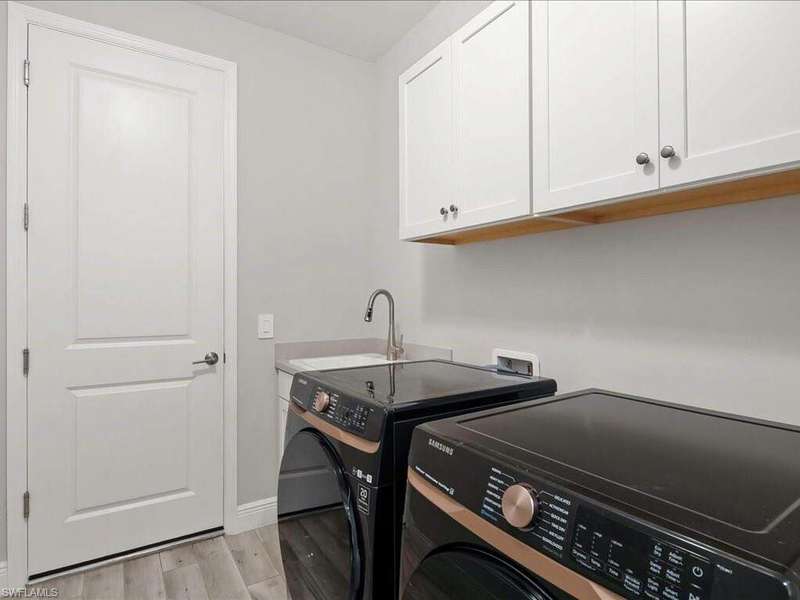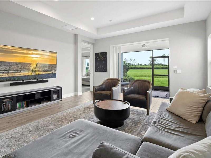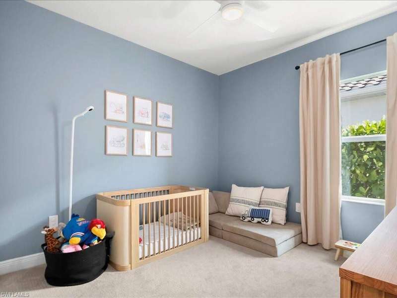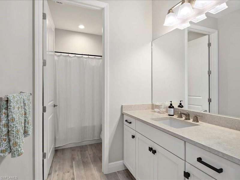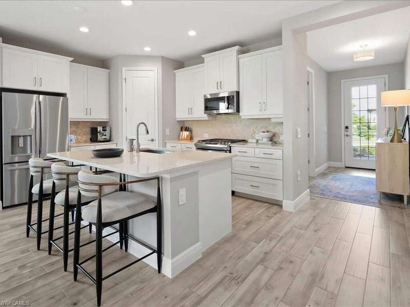 Welcome to a beautifully upgraded home in the scenic SkySail community, where lakeside living blends seamlessly with refined design. Nestled among 246 acres of sparkling lakes and lush landscaping, this home combines comfort, style, and functionality, complemented by amenities that encourage relaxation, wellness, and an active lifestyle. From the moment you arrive, the home's thoughtful details are evident. A multi-lite impact glass entry door opens to an inviting, light-filled layout. The great room and primary suite feature elegant single-step coffered ceilings that add architectural character, while a pocket sliding glass door connects the indoors to a spacious covered lanai-ideal for both quiet mornings and evening gatherings. Just beyond, a large, spacious backyard offers ample space for outdoor entertaining and is perfectly suited for adding a pool. The kitchen is designed for both beauty and performance. Upgraded cabinetry with crown molding, pot-and-pan drawers, and a matching island provide style and function. Quartz countertops are paired with a herringbone-pattern backsplash, stainless steel appliances including a gas range, and a Moen Genta faucet with stainless undermount sink. Nearby, the utility room offers extra convenience with a cabinet, Corian countertop, and a deep laundry sink. Both the primary and guest baths reflect a spa-like elegance with upgraded cabinetry, quartz countertops, brushed nickel fixtures, oversized wall tiles, decorative accents, and custom shower niches. The primary bath features a walk-in shower with accent tile and upgraded lighting, while the guest bath offers equally refined finishes. Throughout the main living areas, wood-look tile provides warmth and durability, while bedrooms feature plush patterned carpet with upgraded padding. Impact-resistant windows ensure peace of mind, and the home includes upgraded lighting, ceiling fan prewires, and a versatile den with double doors. The garage is extended by two feet and includes a Liftmaster opener, keyless entry, and a speckled floor finish. Life in SkySail offers far more than just a beautiful home. Residents enjoy two resort-style pools, a lap pool, and a relaxing spa. The lakehouse and wellness center provide gathering and fitness spaces, while eight pickleball courts, two tennis courts, and outdoor gaming areas offer plenty of recreation. A three-mile perimeter trail winds through the neighborhood, perfect for walking or biking, and the fishing pier and kayak launch make it easy to enjoy the water. The community also features dog parks, playgrounds, and expansive event lawns, ensuring there's always something to do close to home.
