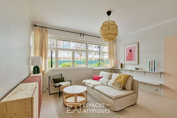 This peaceful living space benefits from pleasant light and an optimized and modular plan.