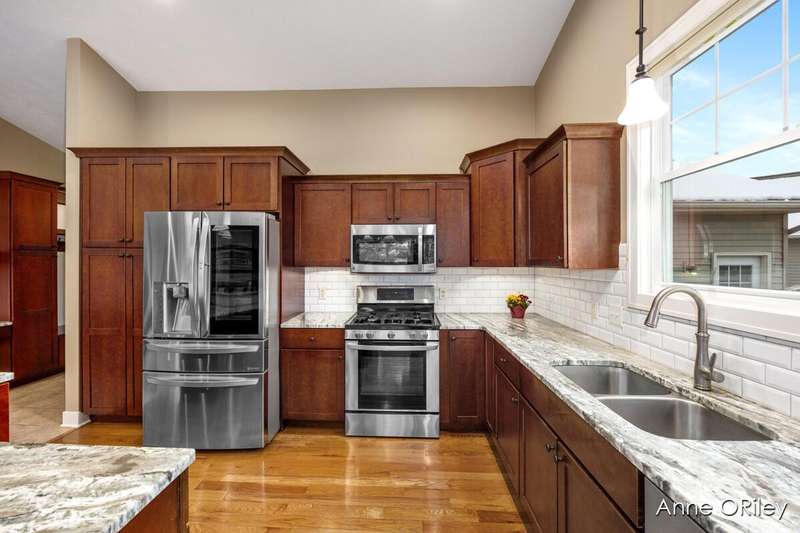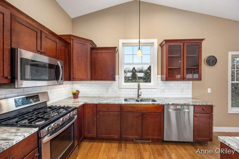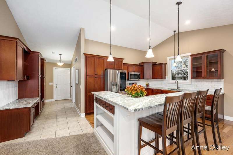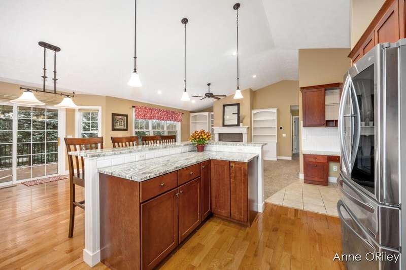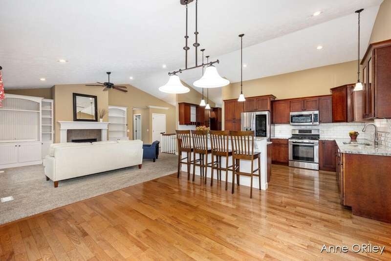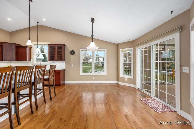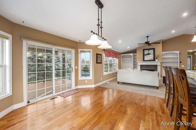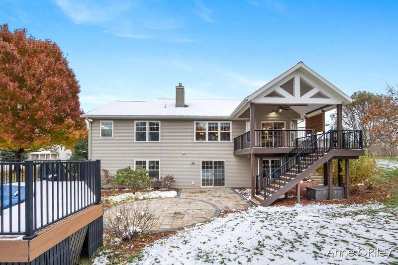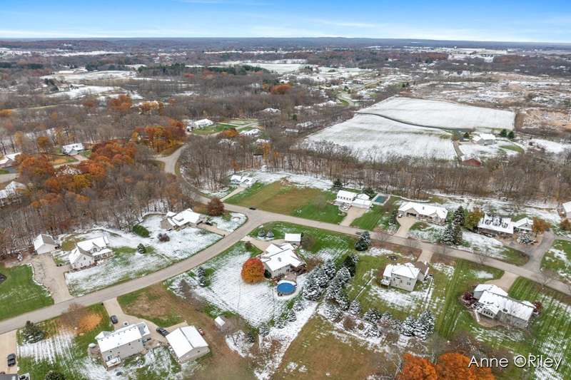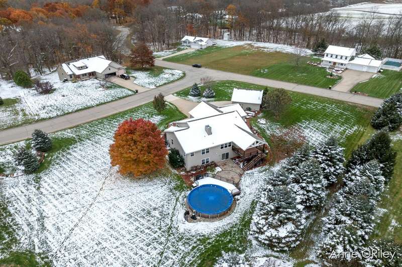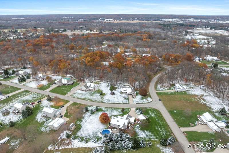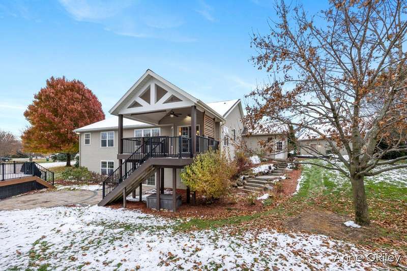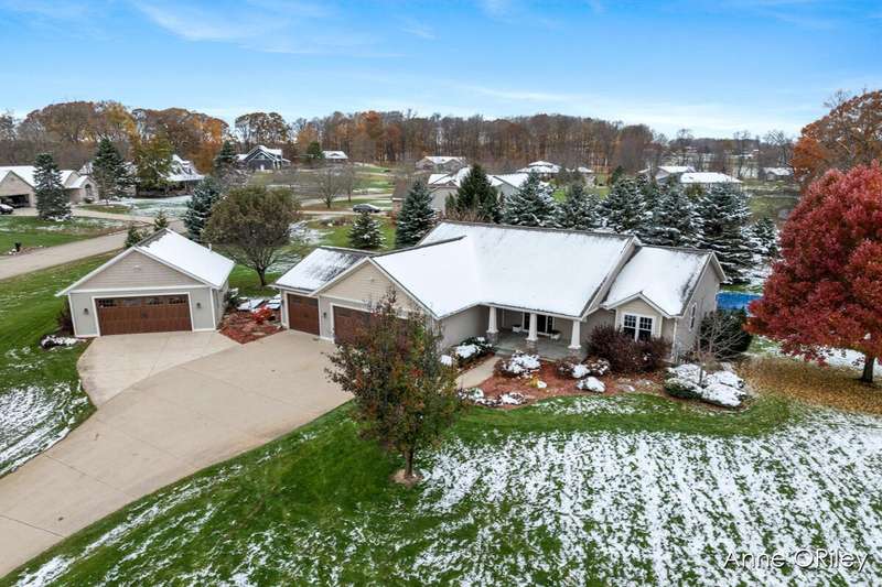 Welcome home to this meticulously maintained ranch, offering 2,638 finished SQFT of custom living on a prime 1.16-acre corner lot. This home perfectly balances everyday convenience with exceptional entertainment features. The open-concept main floor centers around a spacious kitchen boasting stainless steel appliances, granite countertops, and a large center island with a snack bar. The adjoining living room invites relaxation with a cozy gas fireplace flanked by custom built-in shelving. The main level also provides unmatched convenience, featuring a Primary Suite with full bath and walk-in closet, a second bedroom, a dedicated desk area, second full bath and a half, and a main-floor laundry room. The living space extends to the fully finished walk-out basement, complete with a large family room with surround sound, two additional bedrooms, a full bath, and a utility room that doubles as a home gym. Step outside to your outdoor paradise! The beautifully landscaped grounds include a covered deck and a custom brick patio perfect for entertaining, a vibrant flower garden, and an above-ground pool for summer enjoyment, kept pristine by underground sprinkling. For the hobbyist or car enthusiast, this property is unmatched: it features a three-car garage with an EV charger hook-up (and wired for a second!) and a heated pole building/workshop perfect for two extra vehicles or dedicated storage. This stunning, updated home is truly a must-see! Located in desirable Boulder Creek Estates and close to downtown Middleville, Thornapple River Trail, Yankee Springs, and TK Schools. MULTIPLE OFFERS RECIEVED, DEADLINE IS SET FOR 11/14/25 AT 8PM.