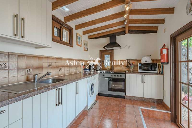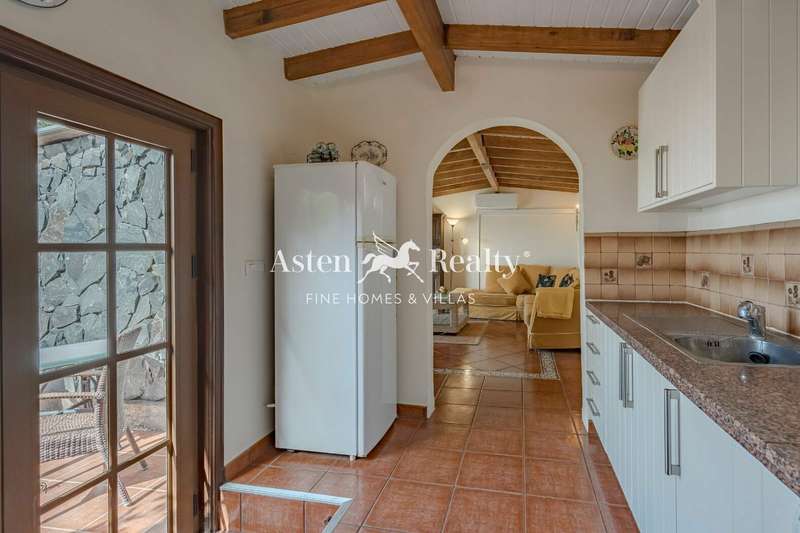 Property no. 2, Independent cottage. Situated in a completely separate area from the main villa, this charming 58 m2 cottage has one bedroom, a full bathroom, living room and kitchen. With two private entrances, gardens, jacuzzi and terrace, this single storey property offers breathtaking views of the endless sea and is ideal for rental.