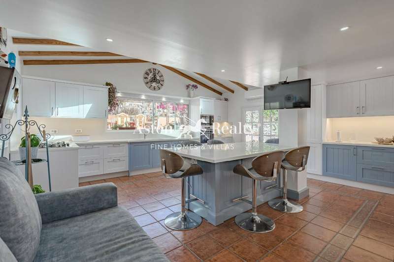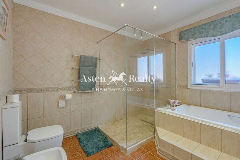Property nº1, Main Villa. This majestic villa of 423 m2 is distributed over two floors, offering the best in comfort and luxury. Upstairs: The main house spans 190 m2 with 4 bedrooms equipped with fitted wardrobes, 2 full bathrooms and a spacious living room that captures panoramic sea views. The jewel in the crown is the completely refurbished kitchen with large windows, linked to the magnificent living room and connecting to the front terraces, which offer the most breathtaking views of the property. Ground floor: A generous garage of 174 m2 houses a fully equipped apartement of 60 m2, perfect for guests or service staff. In addition, there is space for two cars, laundry and a gymnasium, providing the convenience of a complete lifestyle without leaving the house.