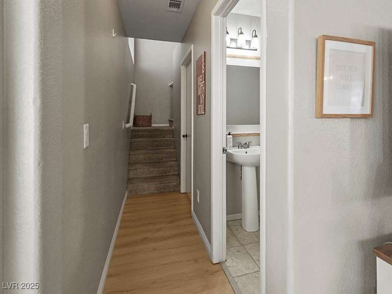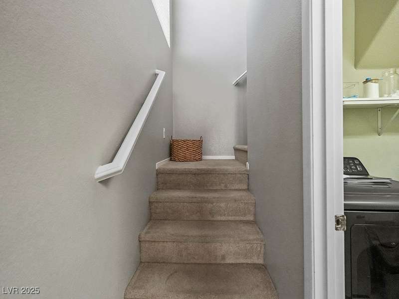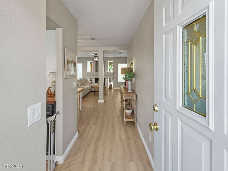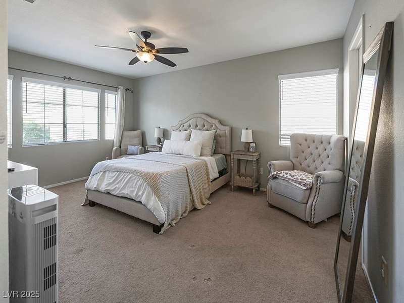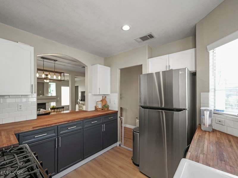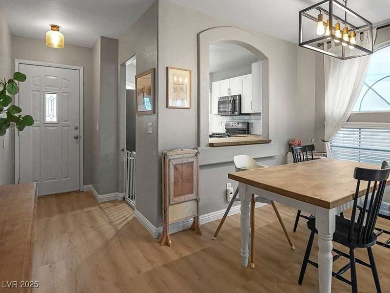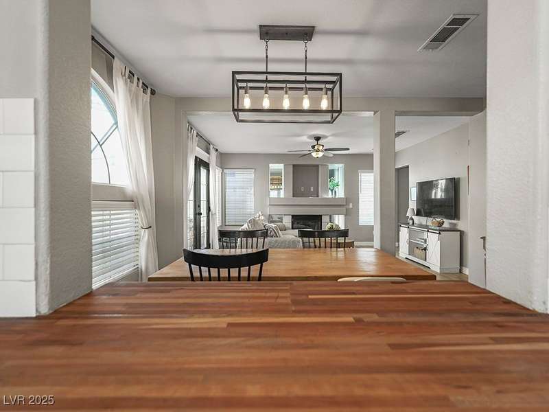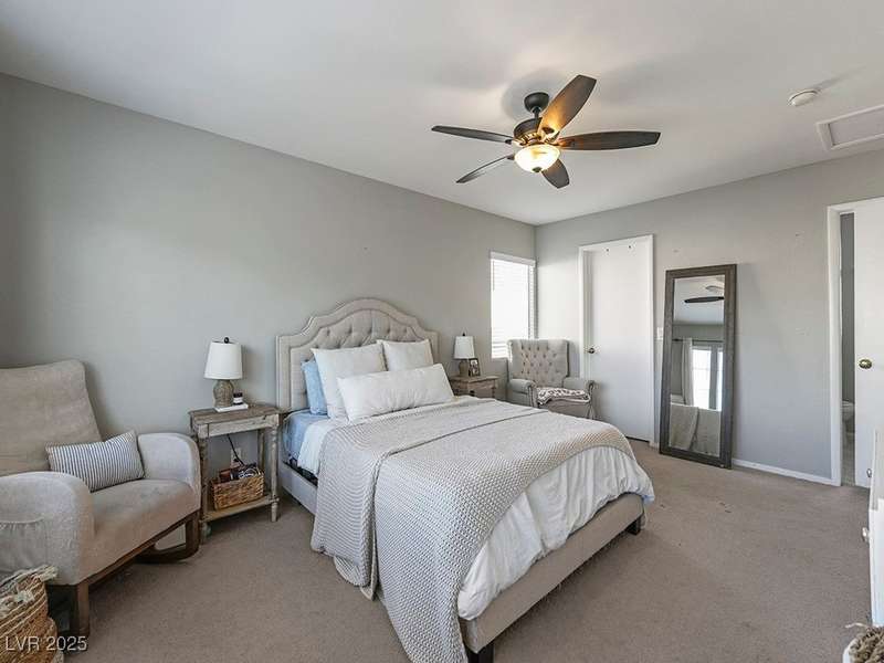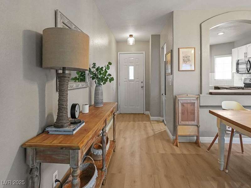 Welcome to this beautifully updated home in American West Village, nestled in a quiet cul-de-sac within a gated, well-maintained community. Enjoy access to 2 community pools, BBQ areas, walking paths, mature landscaping, and RV parking with a virtual gate attendant. Inside, the home features a smart layout with the kitchen just off the entry, butcher block countertops, upgraded lighting, newer fridge and water heater, French doors to the backyard, and a cozy gas fireplace in the living area. 3 bedrooms and 2 bathrooms are upstairs, with great flow for comfortable living. Just minutes from Downtown Summerlin, Target, Costco, Sprouts, Hobby Lobby, and top golf courses, plus easy access to both 215 & 95 freeways. HOA even includes water! VA assumable loan with a low 2.5% interest rate available—don’t miss this incredible opportunity!