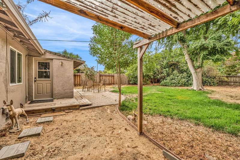 Welcome to this delightful single-level home featuring two bedrooms and one bathroom, with a flexible floor plan that has been used as a three-bedroom by converting the family room. From the moment you walk through the door, you will fall in love with the open-concept design where the spacious living room with its cozy fireplace flows seamlessly into the dining area and kitchen. The kitchen offers beautiful granite countertops, a generous eating area, and direct access to the backyard, creating the perfect setting for both everyday living and entertaining.Step outside and enjoy a large, flat backyard shaded by mature trees, ideal for summer BBQs, relaxing evenings with Delta breezes, or simply enjoying the outdoors. With its size and layout, the yard may also allow for the addition of an ADU if approved by the city. A two-car garage with secure access into the home and charming curb appeal with large trees in the front yard complete the picture. Whether you are looking for your first home, downsizing, or seeking a property with expansion potential, this home offers comfort, charm, and lifestyle flexibility with nothing left to do but move in and relax.