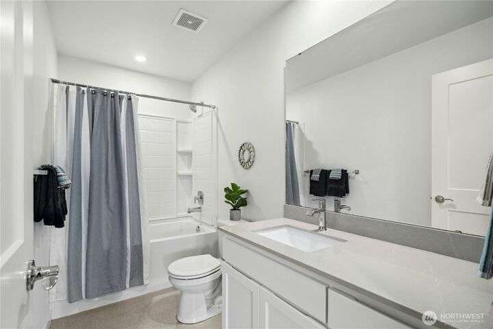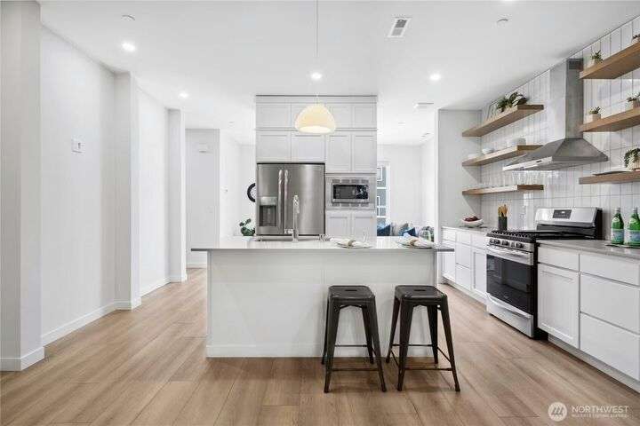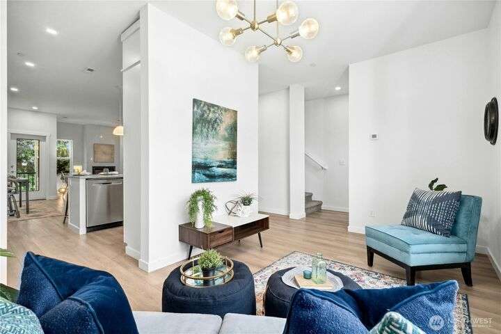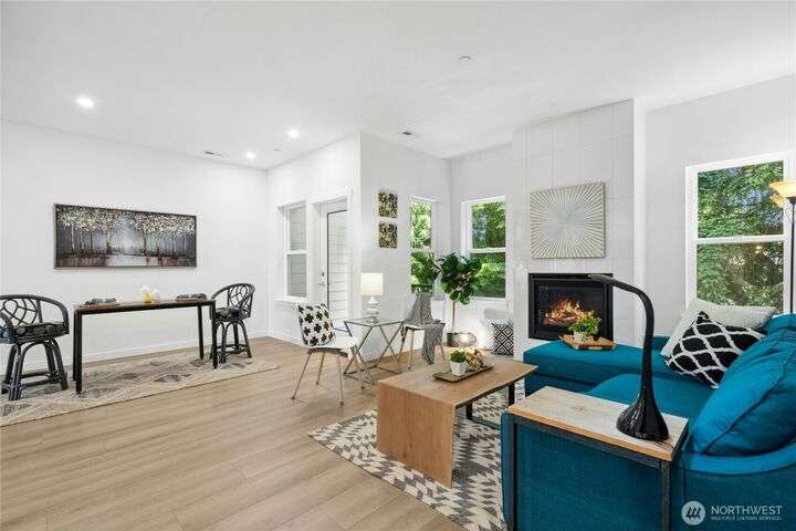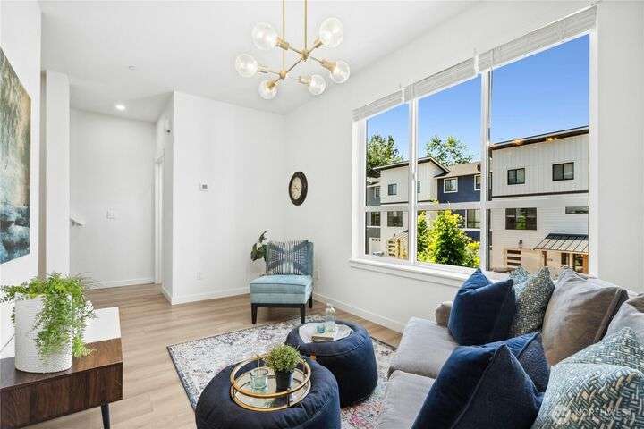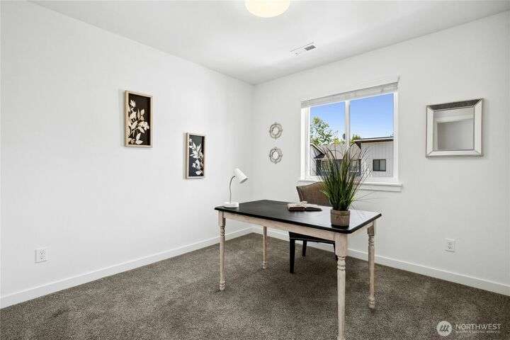 Great Investment! No rental cap! Build your investment portfolio. Built in 2021 with/high-end finishes and attention to detail, & perfectly situated close to shopping, parks, restaurants, community center & easy commuting anywhere. As you enter the spacious foyer, the unique design touches will impress you. On the entry level, you will find a 2-car tandem garage & office/gym that opens up to a fully fenced-in yard. The main level boasts a spacious living room, dining room, breakfast nook, gourmet kitchen with/ Quartz counters, full tile backsplash, open shelving & SS appliances. Enjoy the covered porch just off the living area. The top floor boasts the primary ensuite w/ a walk-in closet, two additional bedrooms, a full bath & laundry room.