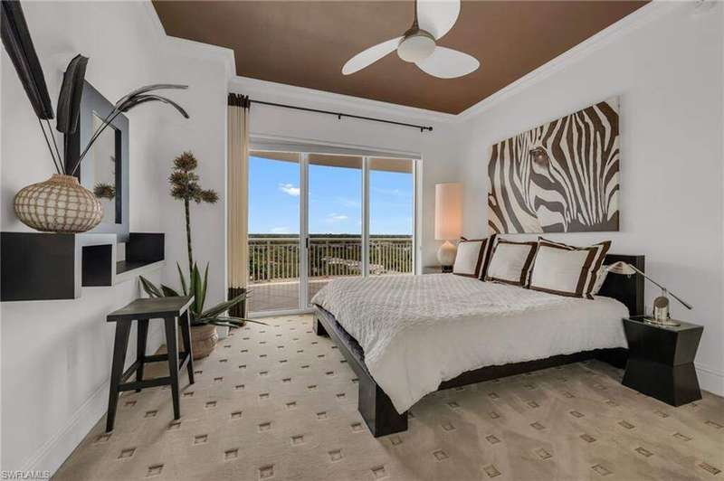 Azure is one of Bonita Bay's finest luxury high-rises situated on a premier site next to Estero Bay Park. This corner residence with 3 ensuite bathrooms, with 2 built-out walk in closets, plus den and has a beautifully appointed private elevator entry foyer. 270-degree floor to ceiling windows provide views of sunrise and sunsets over the gulf, bay, lake, and golf courses. This spacious floor plan with 10' ceilings and chef's kitchen with gas stove top, makes entertaining friends and family a pleasure. Superb finishes typical of this price range were selected and coordinated by the owner. PRIVATE ENCLOSED TWO CAR GARAGE. Azure offers updated communal areas, live-in manager, 2 guest suites, fitness & massage room, club & card room. saltwater pool, spa, two fire pits, covered screened social area with outside grilling. Bonita Bay has 5 golf courses, 18 court tennis, 18,000 sf. fitness, 8,000 sf. Lifestyle spa & salon, full-service marina, Gulf front beach park, 5 restaurants, 10 pickle ball courts, crochet, bocce ball, canoeing, Life Enrichment Center & 3 parks.