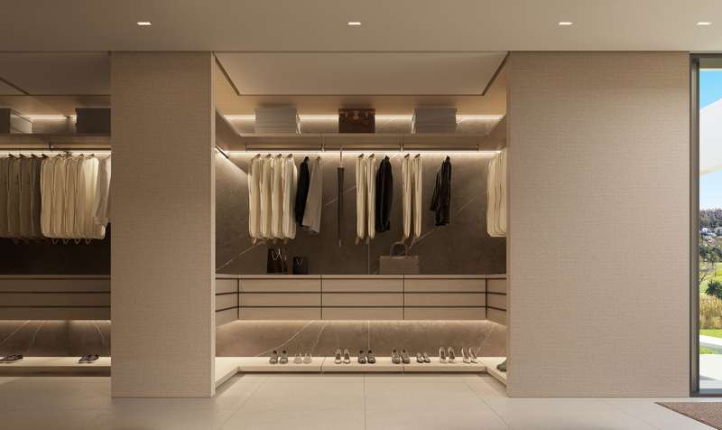 Casa Tesalia is an outstanding design villa which with its frontline golf position is all about entertainment and golf. Stepping into Casa Tesalia you are welcomed by a modern and sleek living space with a nice design kitchen in an open plan to the dining and living room. Through the large floor to ceiling glass doors, you´ll get an amazing view over the golf course of Los Naranjos. Furthermore, on this level there´s 4 bedrooms, all en-suite and with its own terrace. The master bedroom with its almost 40 m2 includes a walk-in closet and designer bathroom in an open plan to create that luxurious suite feeling. The pool area and terrace offers a south orientation with nice views over the golf course and sun all day. Here´s also a golf buggy carport with direct access to the golf course. The roof terrace is every entertainers dream. Here´s you´ll find the outdoor kitchen, seating and dining areas, outdoor cinema, and a DROP spa. All offering amazing views over the golf course and va