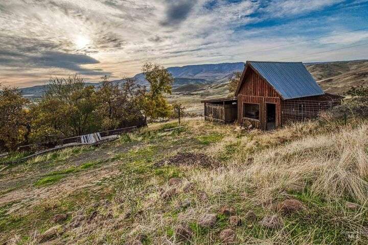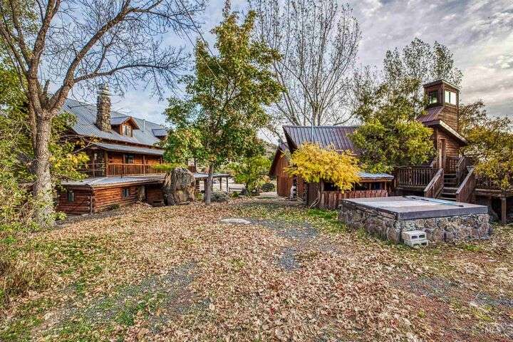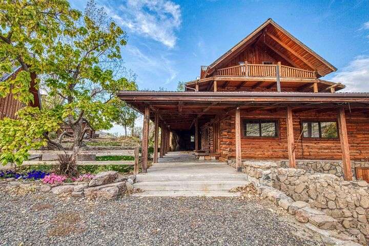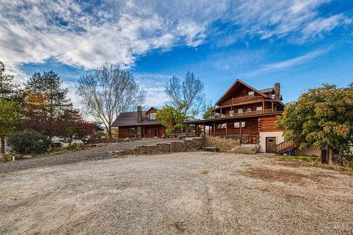 Escape to your private Idaho retreat on 36 acres of rolling countryside where two unique homes invite multi-generational living or creative income potential. Mornings at The Cabin start with coffee on the porch, soaking in the stillness before heading out to the garden or tending to horses. With 3 bedrooms and a main-level primary suite, it’s warm, familiar, and effortlessly functional. Just up the lane, The Lodge rises four stories—ideal for hosting friends, housing extended family, or offering a self-contained apartment for guests or rental income. Rustic finishes, vaulted ceilings, and views for days make it feel like a true mountain lodge. Need workspace or a place to tinker? A massive two-story shop and nearly finished “She-Shed” offer plenty of options. Two wells, a small barn, and an agricultural lease keep life sustainable and taxes low. Stay connected with Wi-Fi capacity and enjoy rural luxury just 30 minutes from daily essentials and an hour to the Boise Airport. This is a lifestyle