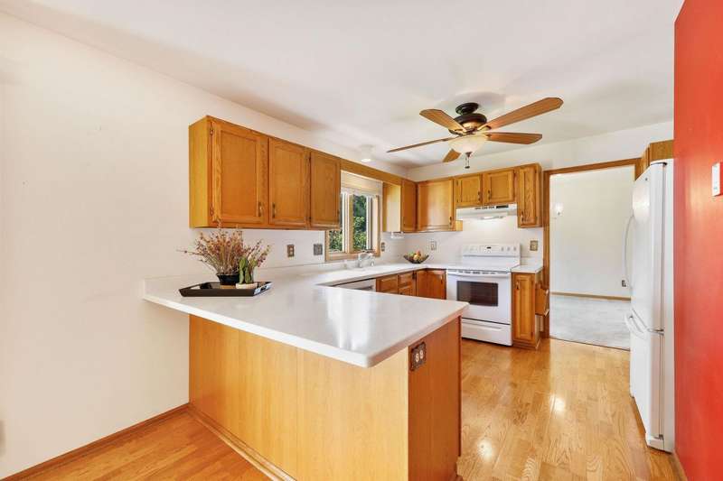 Tucked away on a quiet cul-de-sac, this meticulously maintained home is made for spreading out and enjoying life. A welcoming, spacious front porch and hardwood floors lead you through the main level, where both a formal living room and a cozy rec room with gas fireplace offer space to gather. The dining area and well-appointed kitchen flow into a bright screened porch overlooking the lush yard?your own retreat! Upstairs, four bedrooms include a generous primary suite designed for relaxation. The finished lower level offers a large rec room plus space for hobbies, entertaining, or a home office. All just 15 minutes to Epic!