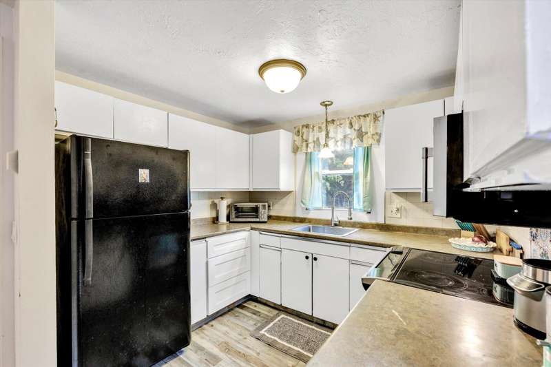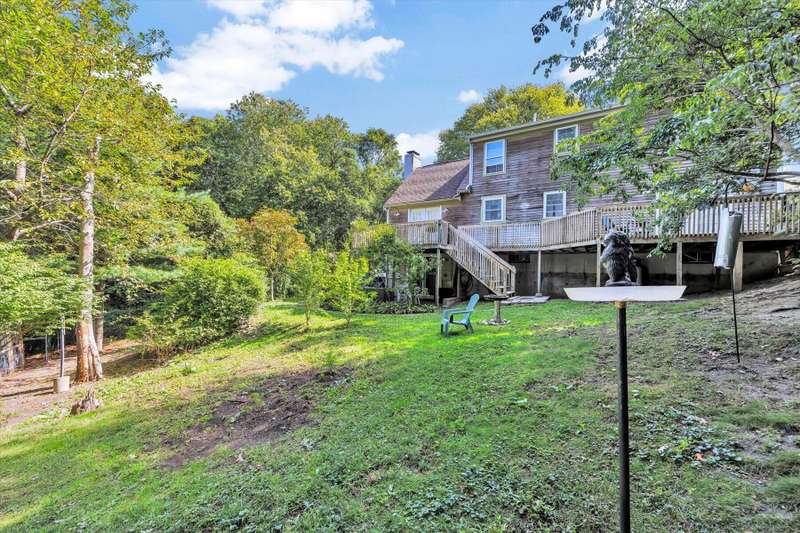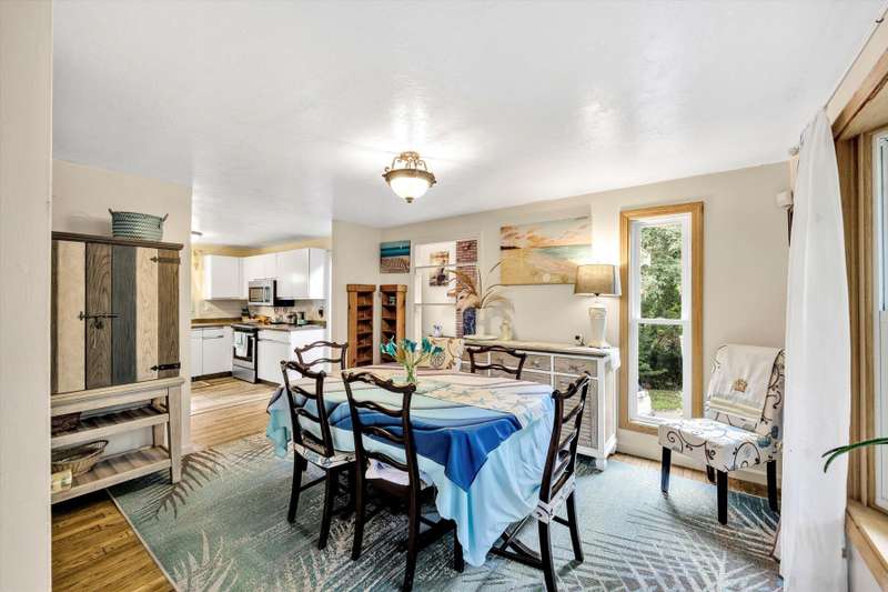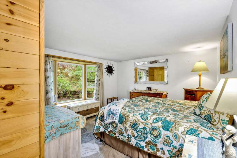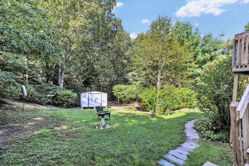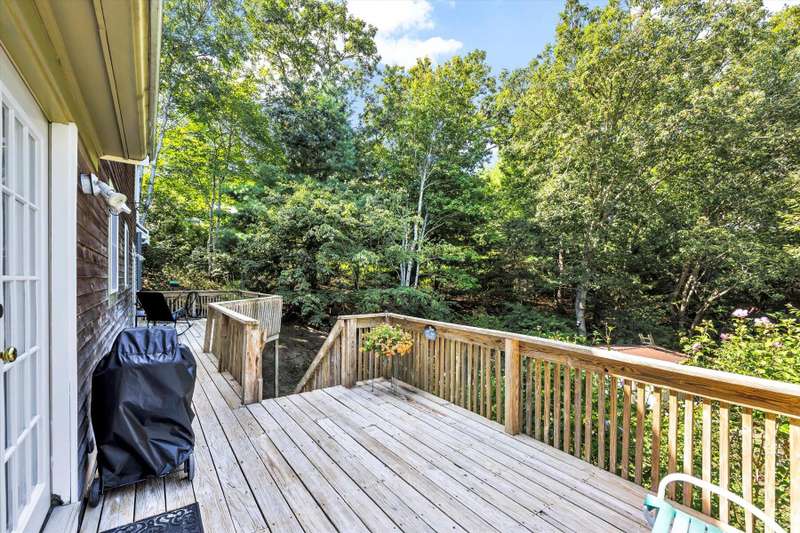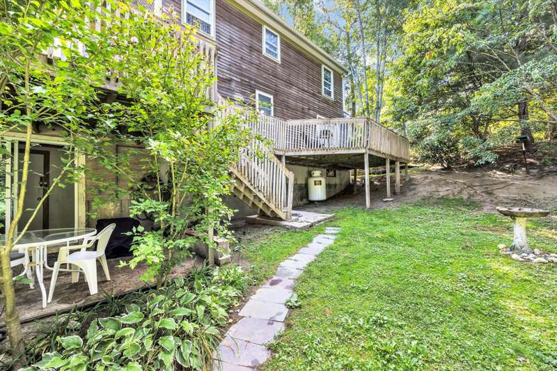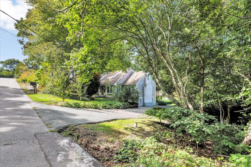 Gardener's paradise in this beautifully maintained Cape-style home, nestled on a private lot in sought-after Hatchville neighborhood. Just a short stroll from Deep Pond, enjoy swimming, fishing, or relaxing on its sandy beach. This inviting home features a flexible floorplan with a first-floor primary bedroom and office, plus two spacious upstairs bedrooms bathed in natural light from skylights. The living room boasts soaring beamed ceilings and a Russo woodstove for cozy supplemental heat. Original oak floors flow through the living areas, complemented by recent updates including replacement windows and fresh paint. Newly updated exterior trim, siding, drain and gutters, along with a leaf gutter filter system add to the appeal. A partially finished walkout basement offers easy access to the secluded backyard. This solid home is a rare opportunity to own in a prime location with easy access to beaches, the bridge, and all the Cape has to offer.