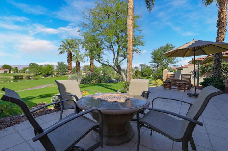 Stunning Ocotillo 3 | Breathtaking Fairway & Mountain Views | GOLF Membership available to Buyer with no wait!!!!!Welcome to your private desert sanctuary, perfectly positioned on the 9th fairway of the Arroyo course with unparalleled lake, fairway, and Chocolate Mountain views. This highly coveted Ocotillo 3 floor plan offers the perfect blend of indoor comfort and outdoor resort-style living.Step through the lush, south-facing courtyard, where vibrant landscaping frames a tranquil waterfall spool--an intimate retreat for peaceful mornings or sunset relaxation. Multiple leisure seating areas, including two cozy fire pits, create ideal spaces for gatherings under the stars. The expansive patio also features a built-in BBQ and sit-up bar, setting the stage for unforgettable outdoor entertainment.Inside, soaring vaulted ceilings, abundant natural light, custom roller shades, and recessed lighting enhance the open, airy design. The chef's kitchen is a true showpiece with top-of-the-line appliances, granite countertops, custom cabinetry, a large walk-in pantry, and a seamless connection to the living and dining spaces.A sit-up wet bar overlooking the golf course makes entertaining effortless, while granite counters in all bathrooms add a touch of elegance throughout. Practical features include a separate laundry room and direct access from the garage, which is finished with epoxy flooring and includes golf cart parking for added convenience.Recent upgrades include a 4-year-old A/C's and water heaters as well as leased solar panels for energy efficiency. This home is offered furnished per inventory with an available Golf Membership. This is more than a home; it is a luxurious desert escape with panoramic views, resort-style amenities, and exceptional attention to detail. Do not miss this rare opportunity to own a piece of paradise.