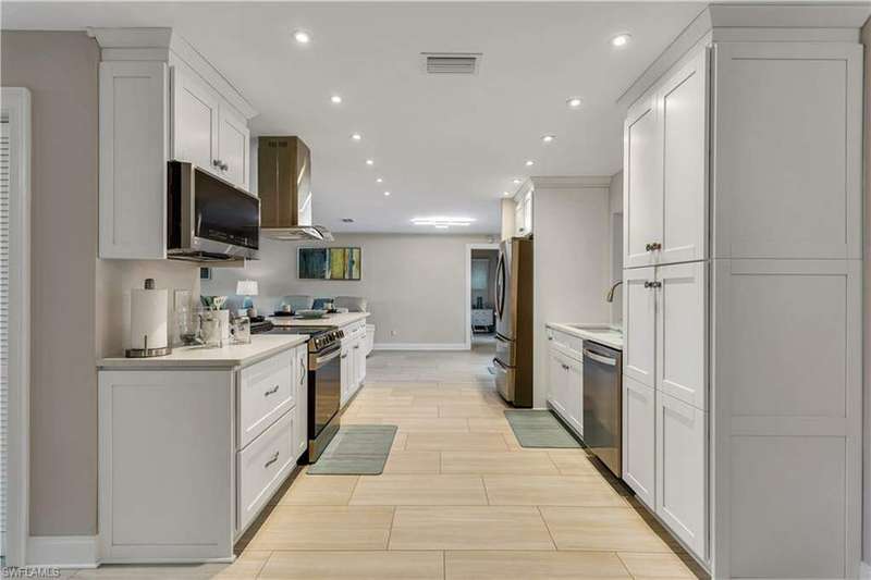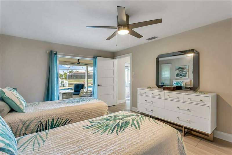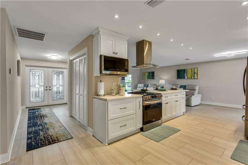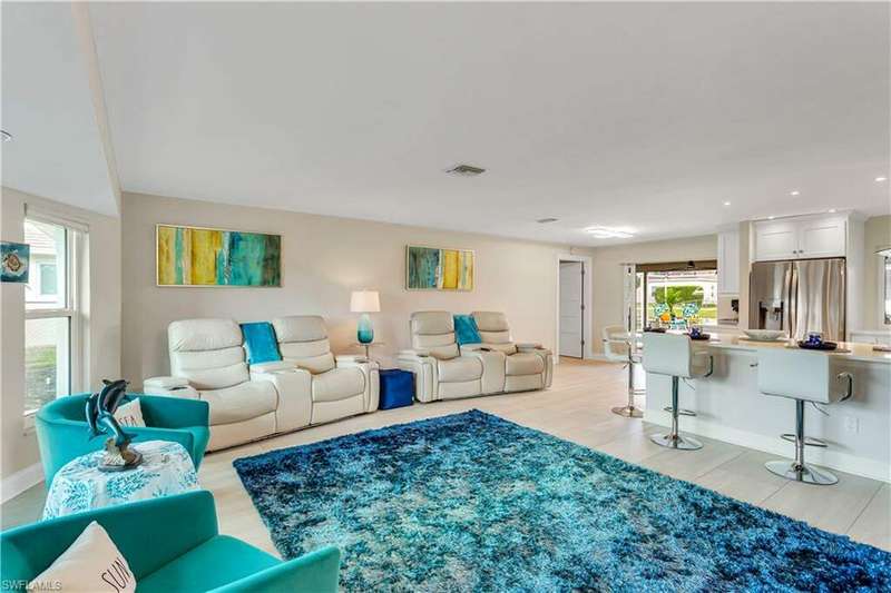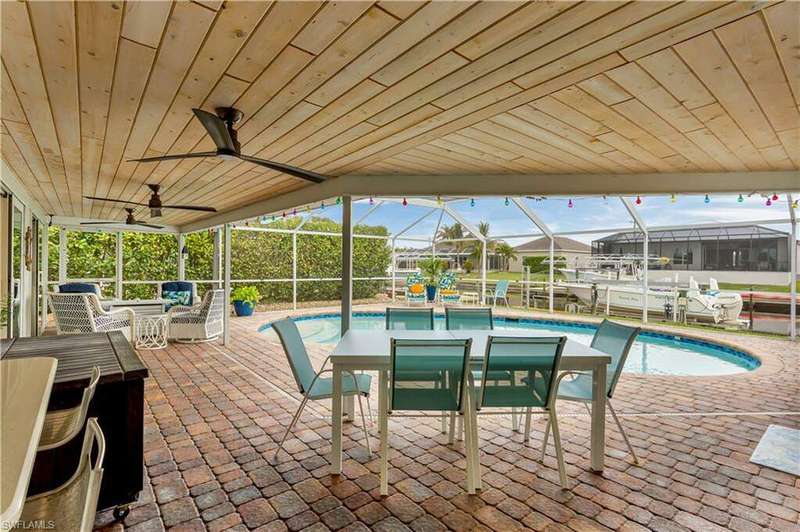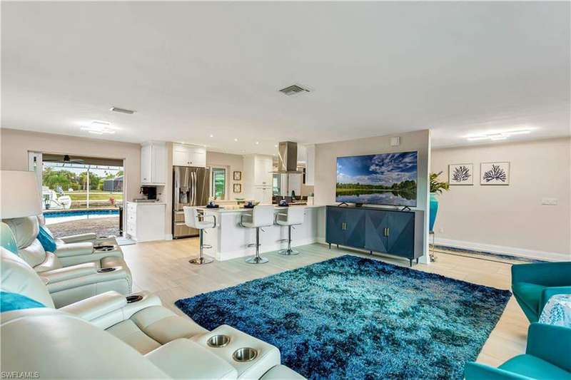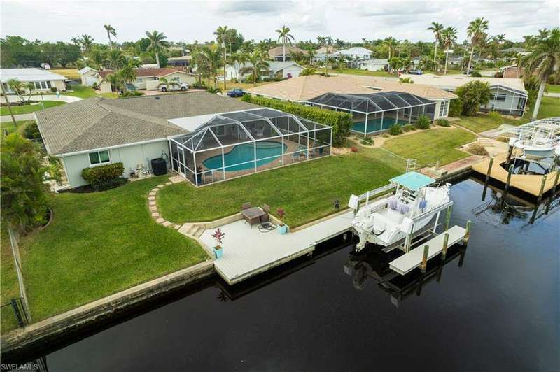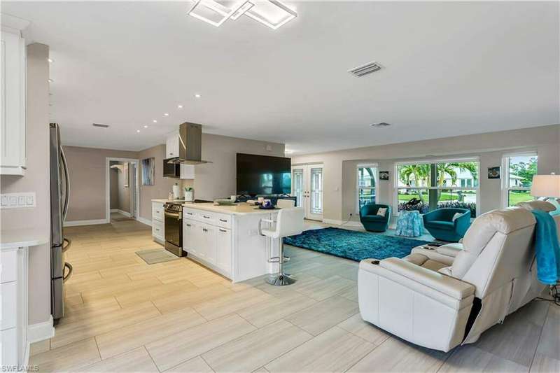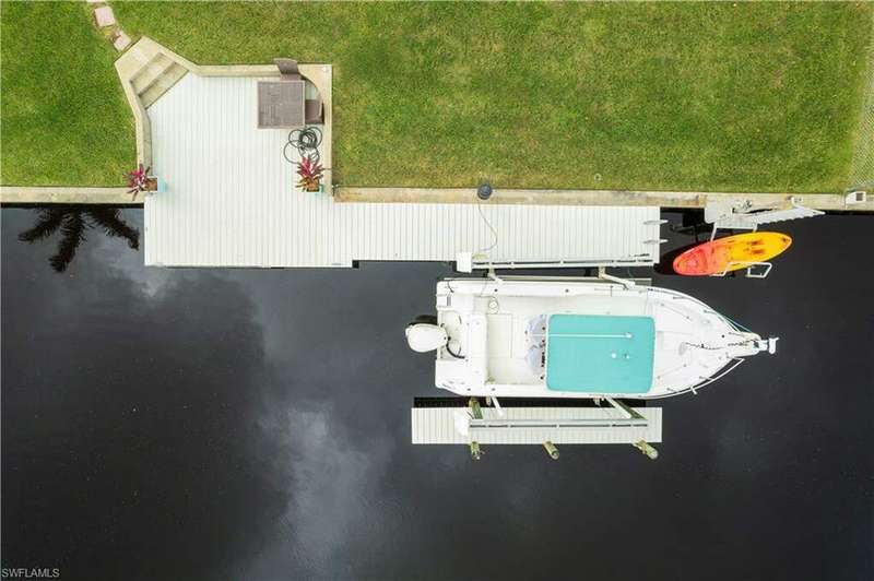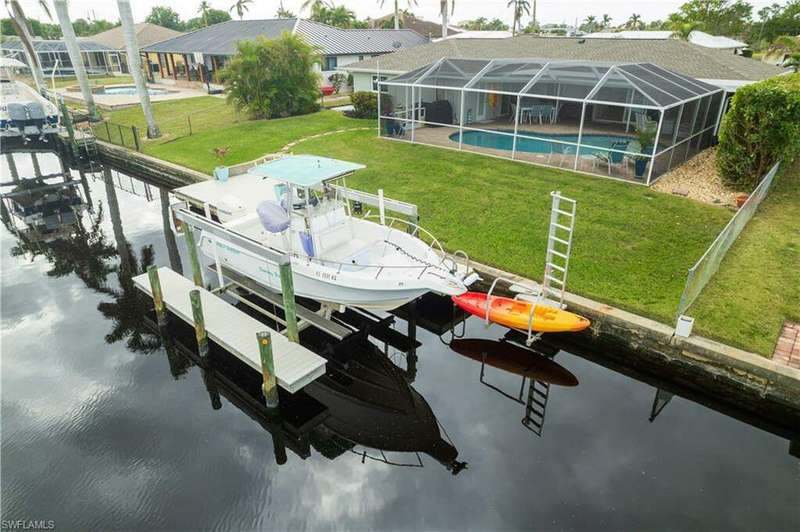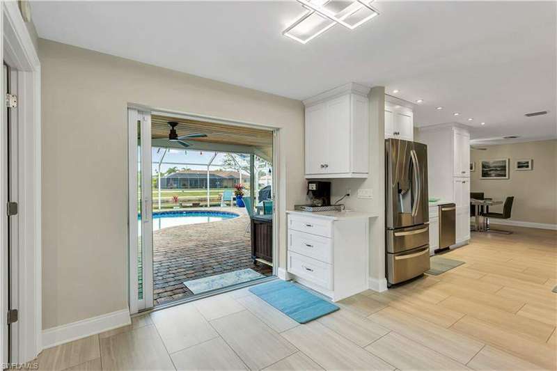 Welcome to your dream Gulf-access pool home in the coveted sailboat-access no bridges of Southwest Cape Coral! This exquisitely remodeled 3-bedroom, 2-bath retreat with a spacious 2-car garage with hurricane rated doors and windows perfectly balances luxury and practicality, ready for you to move right in. The moment you step inside, the expansive open floor plan captivates you, with three grand sliders seamlessly merging indoor and outdoor spaces for an unrivaled entertaining experience or simple relaxation. The kitchen is a culinary masterpiece, gleaming with brand-new quartz countertops, state-of-the-art appliances, pantry and pull-out cabinetry for ease and elegance. Revel in the opulence of newly remodeled bathrooms, featuring stylish vanities with quartz countertops and newly tiled showers. The interior is beautifully updated with new flooring throughout, complemented by fresh interior paint, upgraded interior doors, and trim for a sophisticated touch. Every corner of this home speaks of comfort and convenience, with updates in 2023 & 2024 of new roof, modern new HVAC, new water heater, both garage-door and new double glass front entry door meets wind mitigation standards. The irrigation system and lush, updated landscaping with new palm trees enhance the home's curb appeal. Step outside to your private oasis, where a sparkling, resurfaced pool invites year-round relaxation on oversized paver patio. Enjoy the luxuries of the new pool pump, a pool heater that heats or cools the water to the perfect temperature. A complete newly screened pool cage. Boating enthusiasts will appreciate the dock equipped with a versatile boat lift and either fishing boat or pontoon based on how you configure, water, electric and kayak lift will allow hassle-free access to open water in ten minutes or less. Additional highlights include a chic coffee bar, abundance of storage, a convenient cabana bath, and is Perfectly located near top shopping, dining, bike or walk to Park and entertainment venues. Immerse yourself in the vibrant lifestyle that awaits in this meticulously upgraded, move-in-ready home-offering unmatched Gulf access in a community renowned for its appeal. Seize the opportunity to call this remarkable residence yours and embrace both luxury living and water-bound adventure.