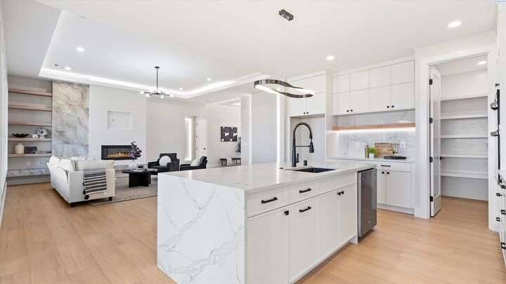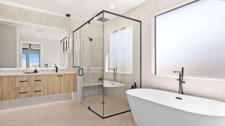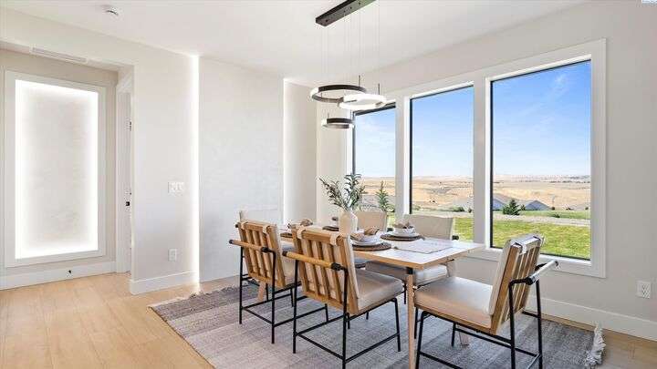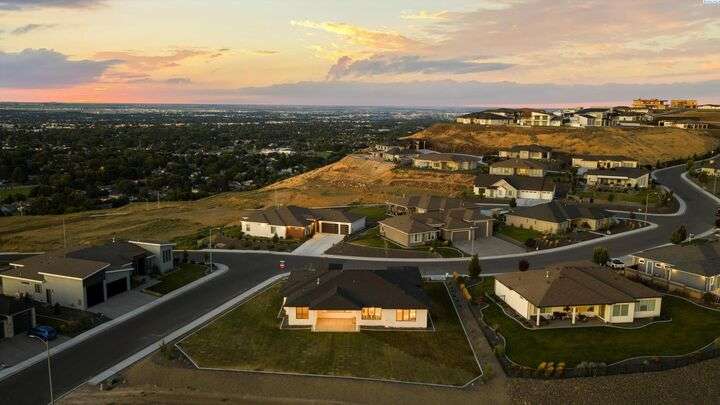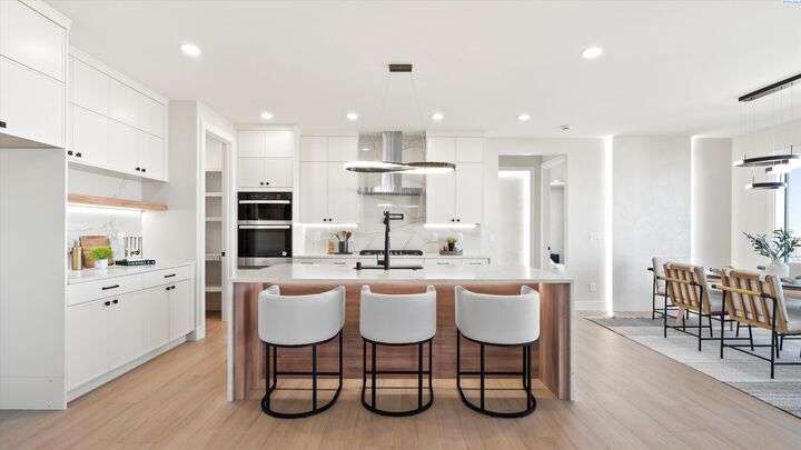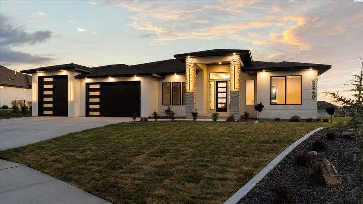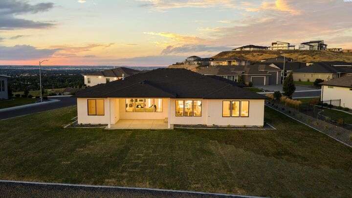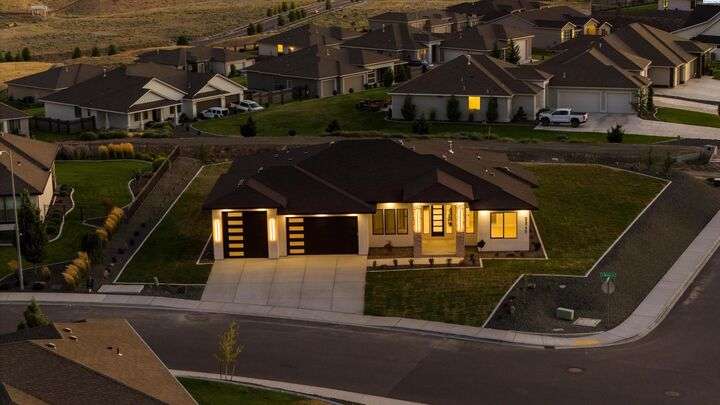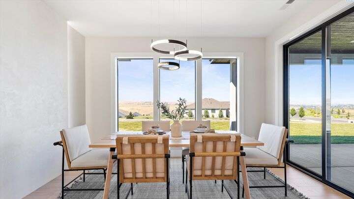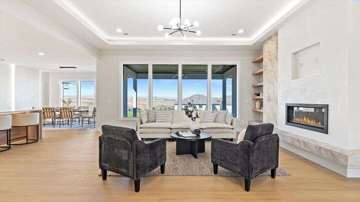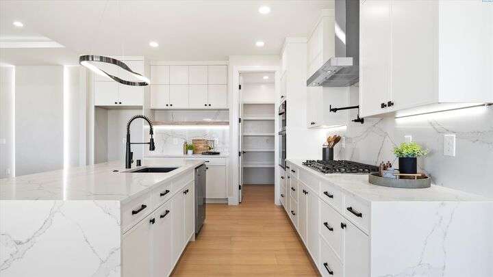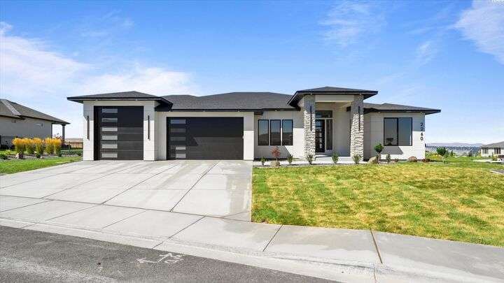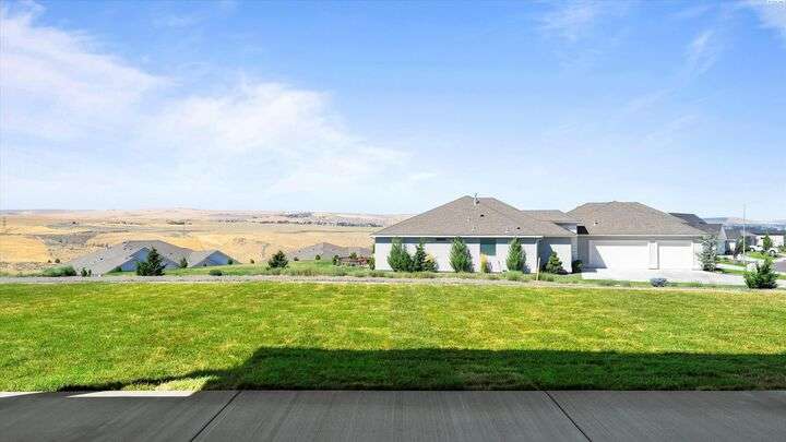 Welcome to Viktory Homes at Southcliffe, where luxury, comfort, and breathtaking views come together in perfect harmony. Step inside to discover soaring ceilings, abundant natural light, and high-end finishes that elevate every detail of this exceptional home. The gourmet kitchen is a chef’s dream, featuring stainless steel appliances, quartz waterfall countertops, a pot filler, custom cabinetry, and a spacious island ideal for entertaining. The open-concept living and dining areas are adorned with durable LVP flooring and expansive windows that flood the space with natural light, creating a warm and inviting atmosphere. The primary suite offers a true retreat, complete with a spa-like ensuite bathroom and a massive walk-in closet. A secondary master suite with a private ensuite bath provides the perfect space for guests or multigenerational living. Step outside to a backyard full of possibilities, with ample room to add a pool and create your own private oasis. The large covered patio extends your living space outdoors and is perfect for year-round enjoyment. Take in the incredible views that make Southcliffe living truly special. Located in one of Kennewick’s most desirable communities, you’ll enjoy close proximity to top-rated schools, shopping, dining, and outdoor recreation, including golf, hiking trails and more! Don’t miss your chance to own this stunning home—contact your favorite agent today to schedule a private tour.