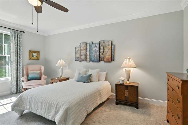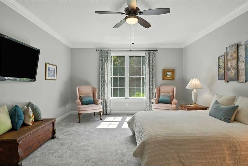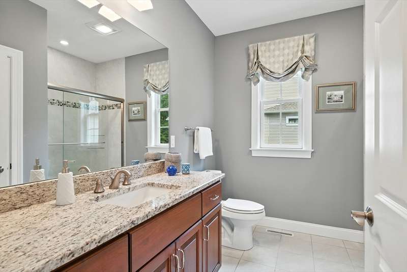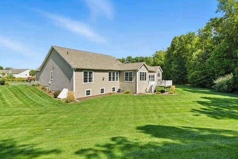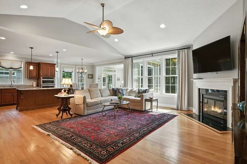 Why build when you can move right into this beautifully maintained, free standing re-sale at the sought after "Fields at Chestnut". Offering a care-free lifestyle in a welcoming and vibrant 55+ community, this home features a premium location at the end a cul-de-sac, abutting the woods for maximum privacy. Inside, natural light pours through bay windows, highlighting hardwood floors, crown molding, and a great room with soaring ceiling and gas fireplace. A sunroom and 3-season porch invite you to relax with morning coffee or evening wine. The primary suite has its own bath and walk-in closet, while the flexible second bedroom is ideal for guests or an office. The spacious basement boasts daylight windows. With upgrades throughout and a friendly, welcoming community just outside your door, this home is truly move-in ready so you can spend less time worrying about upkeep and more time enjoying life!
