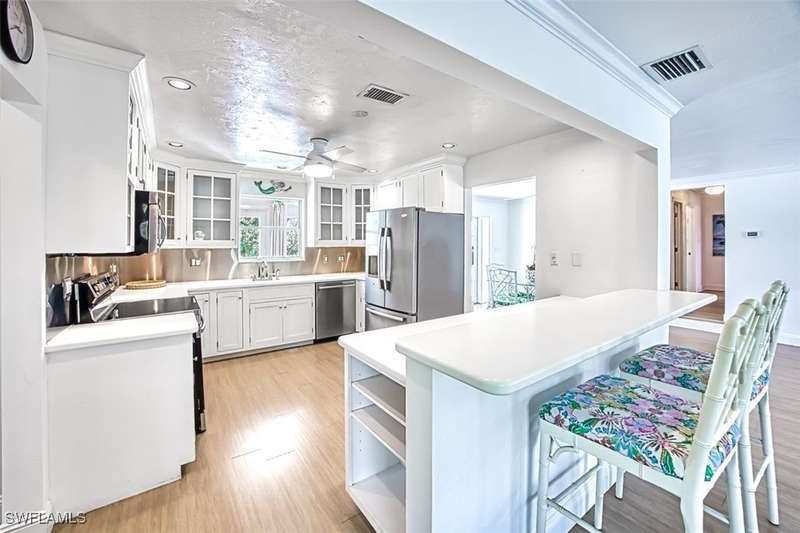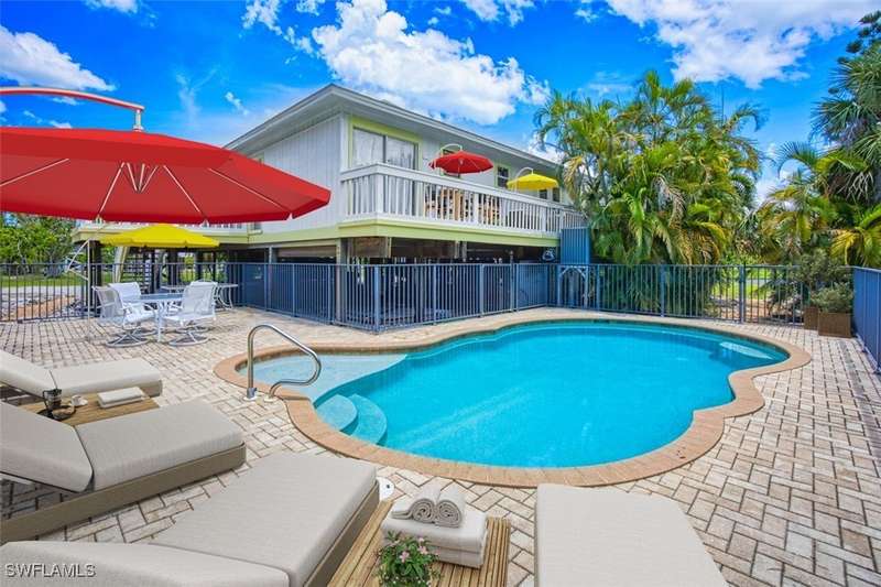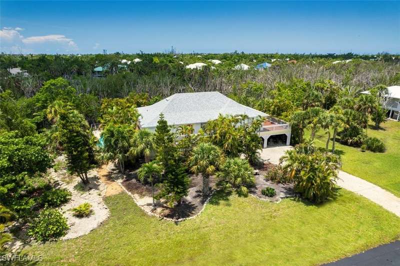 Welcome to Mermaid Cottage, a charming elevated 3BR/2BA pool home in Sanibel's Gumbo Limbo neighborhood. This is the best-priced elevated pool home currently on the market in Gumbo Limbo, offering exceptional value in a family-friendly community - a rare opportunity to own a Sanibel home well below the island's median price. Surrounded by lush native landscaping on over 1/2-acre, this beach retreat features light-filled living spaces, a spacious enclosed Florida room, relaxing porch areas, and a sparkling pool with patio area-ideal for laid-back island living or entertaining. This well-maintained property offers a perfect blend of island charm and modern comfort, ideal as a full-time residence, vacation getaway, or investment opportunity. Most recent updates include a new A/C system and new pool equipment in 2023. The roof was replaced in 2018, water heater in 2017. The current flood insurance policy is transferable. Gumbo Limbo is a serene enclave of island-style homes and lakes. Zoned for The Sanibel School, a top-rated K-8 public school. Just a short drive or bike ride to world-renowned beaches, nature preserves, local shops, and dining, Mermaid Cottage invites you to slow down, breathe deeply, and live the Sanibel dream!