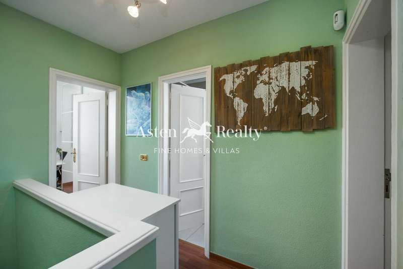 The house has four double bedrooms, including a master bedroom with a luxurious en-suite bathroom with Jacuzzi, as well as a family bathroom on the upper floor and a guest toilet on the ground floor. The living area consists of an open-plan living-dining room, a newly renovated kitchen with a modern and functional design, and a separate study/office, perfect for teleworking or as a multipurpose room.
