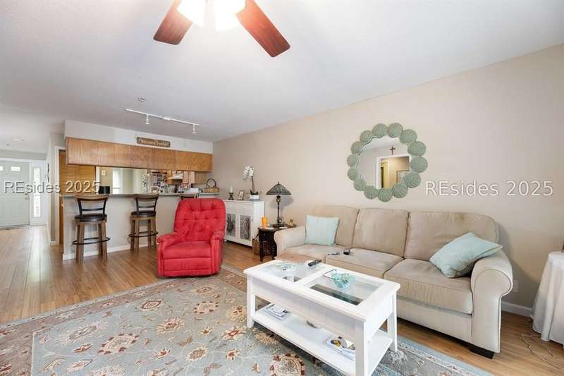 Wow! Top floor, corner, 2 BR, 2 BA, one level villa in "The Elevator" building at Wyndemere. Enjoy granite countertops, an eat-in kitchen, wood floors, updated baths, large sun filled living room leading to a generous deck overlooking the lagoon. Large outdoor storage closet. You can't beat the mid-Island location. Ideal primary or second home. Walk to Shelter Cove, bike to the beach, here's so much, so close!