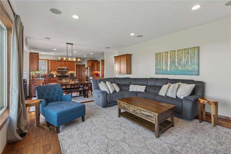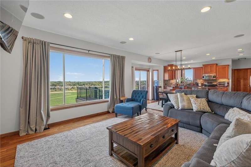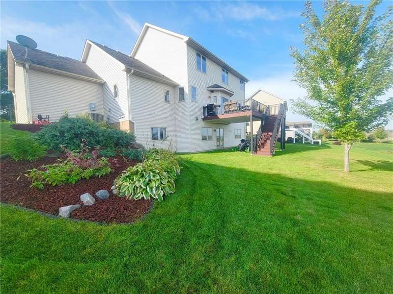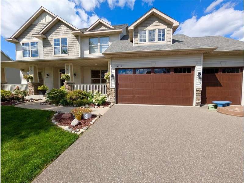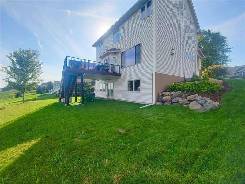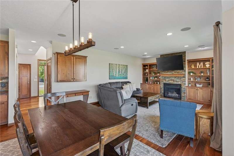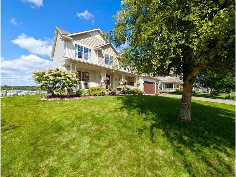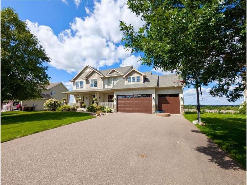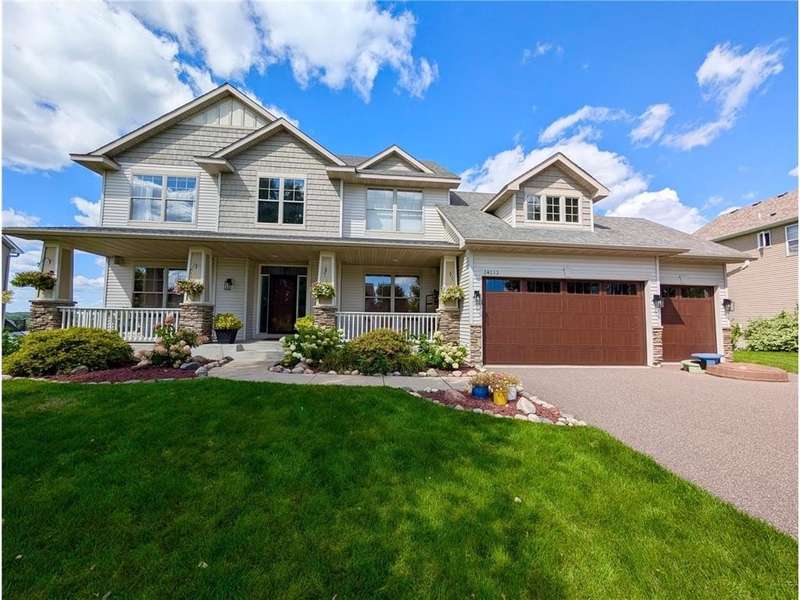 Spacious 5BR/4BA two-story in the Edgewater neighborhood of Rogers with 3,444 finished sq. ft., walkout basement, and 3-car garage on a landscaped .33-acre lot. Built in 2007 and meticulously maintained, this home features an open main level with hardwood floors, gas fireplace, and both formal and informal dining. The kitchen offers generous cabinetry and an adjoining informal dining space that walks out to the deck. Upper level hosts 4 bedrooms including a primary suite with walk-in closet, and a 2023 bathroom renovation. Notable updates include: basement finish, deck/under-decking, and gutters (2018); retaining wall rebuild plus new furnace & A/C (2019); basement bath and expanded driveway (2020); remodeled laundry/mudroom (2021); new living room & accent windows (2022); EV charger, home theater, and master bath renovation (2023); exterior permanent lighting and washer/dryer combo (2024); custom honeycomb blinds including automated foyer blind (2025). Lower level adds a large recreation/media room and 5th bedroom. Convenient location near schools, parks, and major commuting routes. Take in a view unlike anything else in the area. From this spot, sunsets stretch across the sky, and you’ll appreciate the natural light and year-round scenery right outside your windows. Inside, enjoy cozy family movie nights and spaces designed for togetherness. For winter fun, you can even hop on your snowmobile right from the backyard and connect to the nearby riding trails.