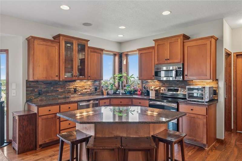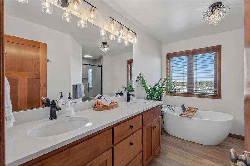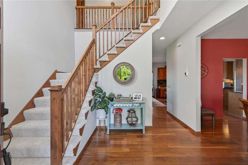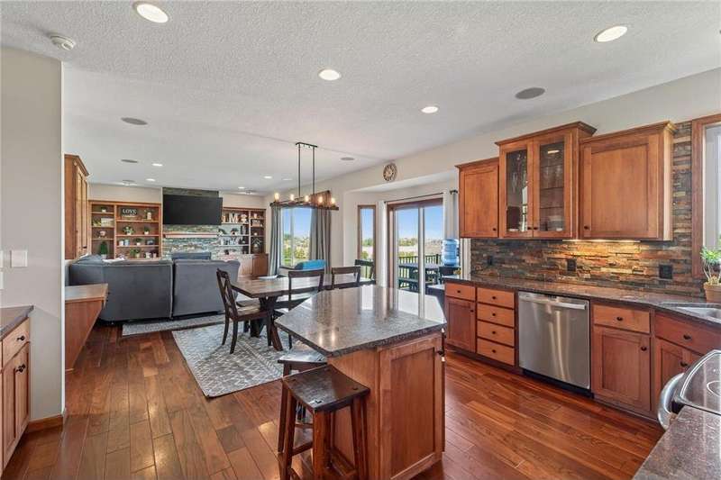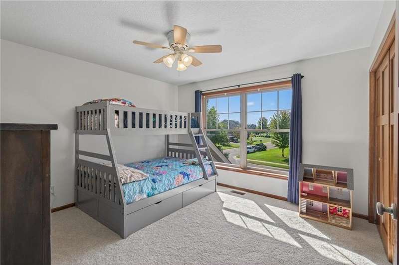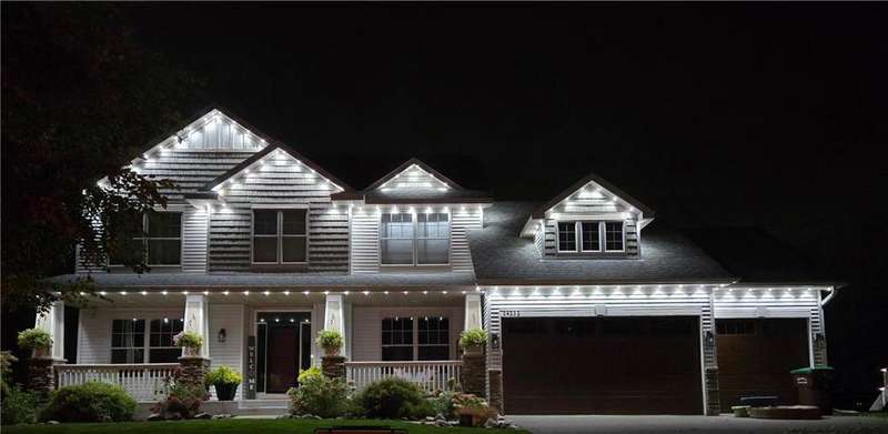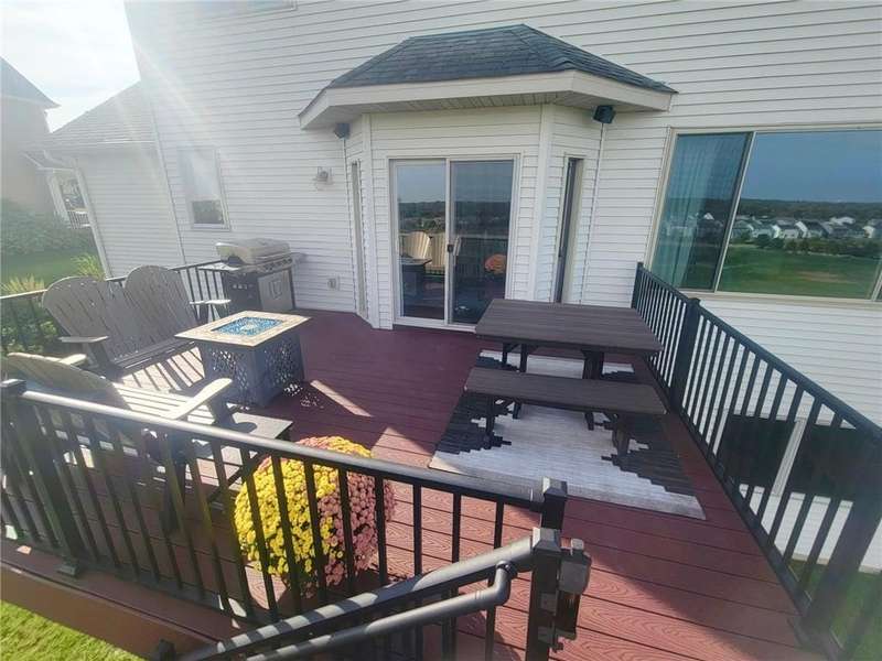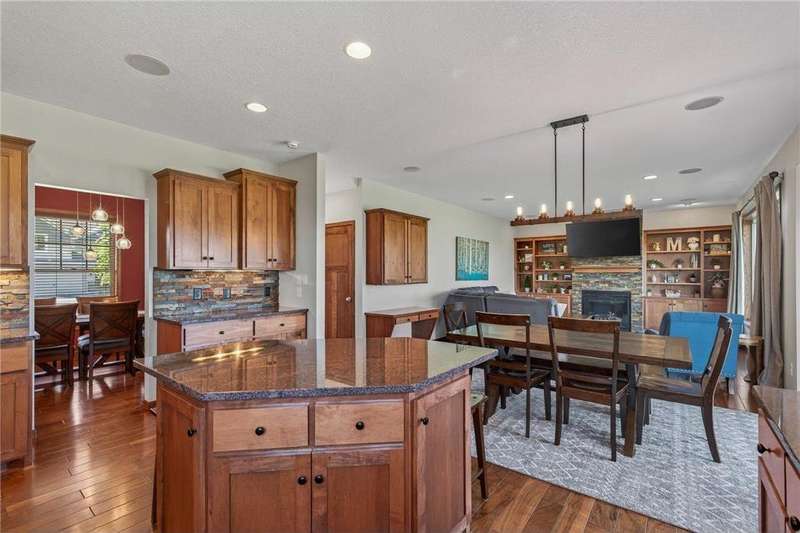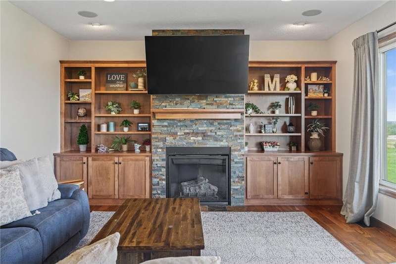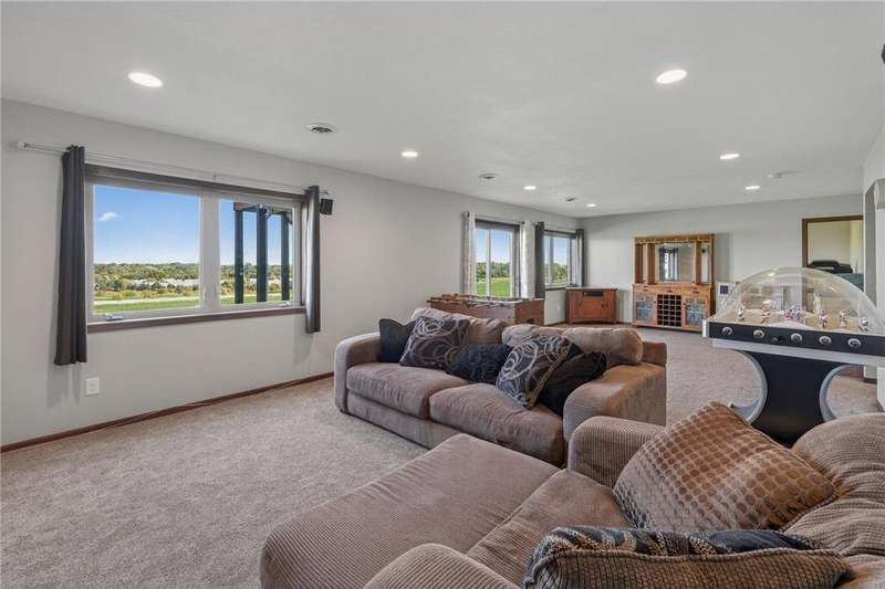 Spacious 5BR/4BA two-story in the Edgewater neighborhood of Rogers with 3,444 finished sq. ft., walkout basement, and 3-car garage on a landscaped .33-acre lot. Built in 2007 and meticulously maintained, this home features an open main level with hardwood floors, gas fireplace, and both formal and informal dining. The kitchen offers generous cabinetry and an adjoining informal dining space that walks out to the deck. Upper level hosts 4 bedrooms including a primary suite with walk-in closet, and a 2023 bathroom renovation. Notable updates include: basement finish, deck/under-decking, and gutters (2018); retaining wall rebuild plus new furnace & A/C (2019); basement bath and expanded driveway (2020); remodeled laundry/mudroom (2021); new living room & accent windows (2022); EV charger, home theater, and master bath renovation (2023); exterior permanent lighting and washer/dryer combo (2024); custom honeycomb blinds including automated foyer blind (2025). Lower level adds a large recreation/media room and 5th bedroom. Convenient location near schools, parks, and major commuting routes. Take in a view unlike anything else in the area. From this spot, sunsets stretch across the sky, and you’ll appreciate the natural light and year-round scenery right outside your windows. Inside, enjoy cozy family movie nights and spaces designed for togetherness. For winter fun, you can even hop on your snowmobile right from the backyard and connect to the nearby riding trails.