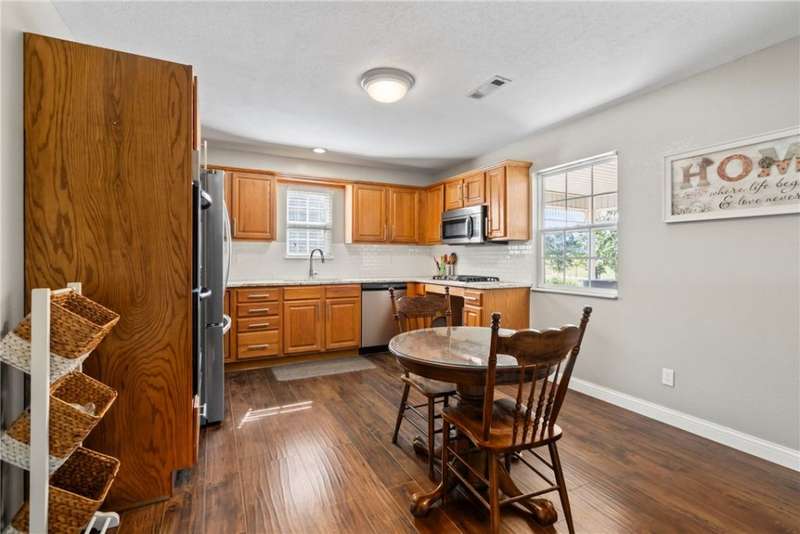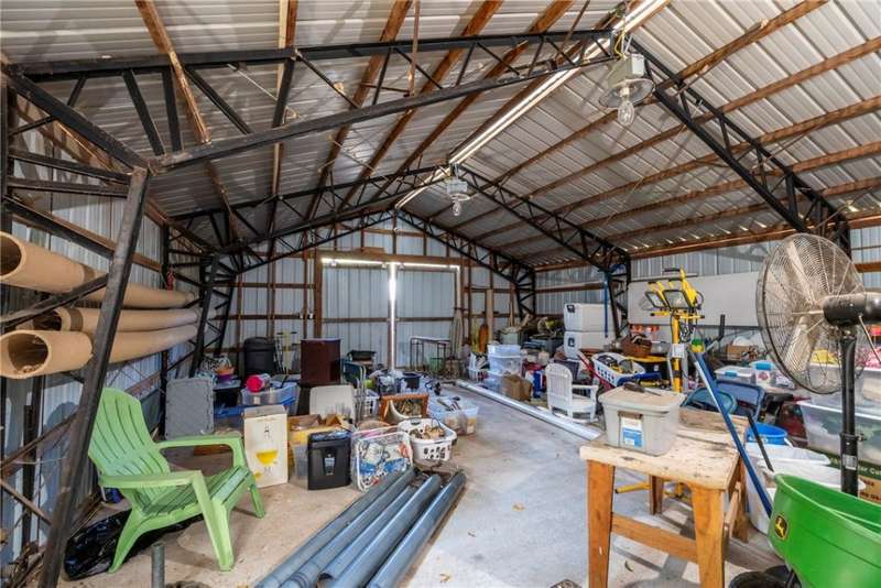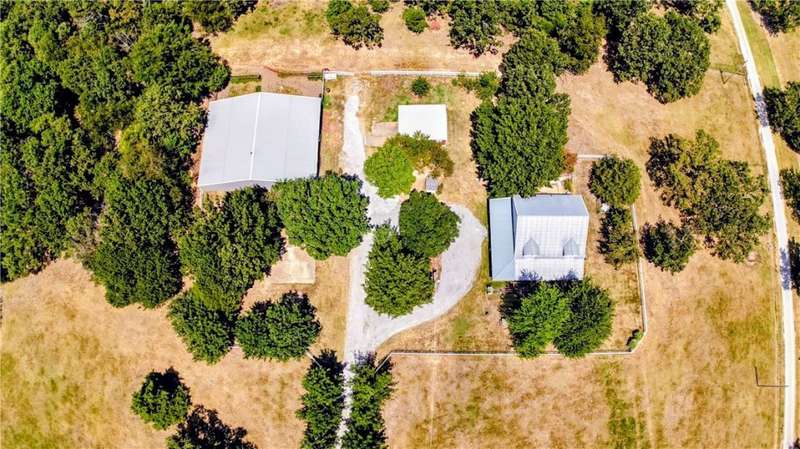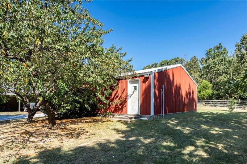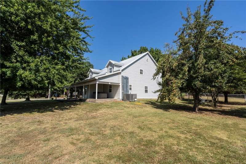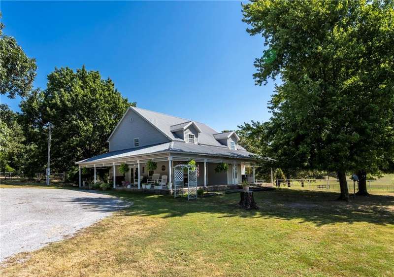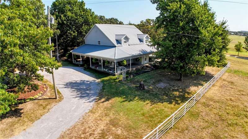 Two-story farmhouse on 15 acres! This 3-bed, 3-bath, 2,794sf home blends classic charm with rural serenity. The welcoming wrap-around porch leads into an open floor plan, perfect for entertaining. Kitchen has granite, gas cooktop, double wall ovens, dishwasher, & microwave/vent. Breakfast nook area & dining room. Primary bedroom, bath, & utility downstairs with fireplace in LR. Upstairs, you'll find a flexible bonus room, full bath, & guest rooms. Metal roof & vinyl exterior. The property is a mix of pasture & wooded acreage with pipe fencing, apple, & pear trees. 2 Shops with concrete floors & electric (one has 110), & a barn with six bays on each side provide extensive space for cars, projects, & storage. Basketball court with goal. Corrals convey. Frost-free hydrants. Located on a paved road just outside of town with a circle drive. City water, natural gas, & septic system. HVAC-appx 4yrs. Hot tub conveys. Survey needed-15 acres m/l.