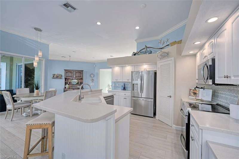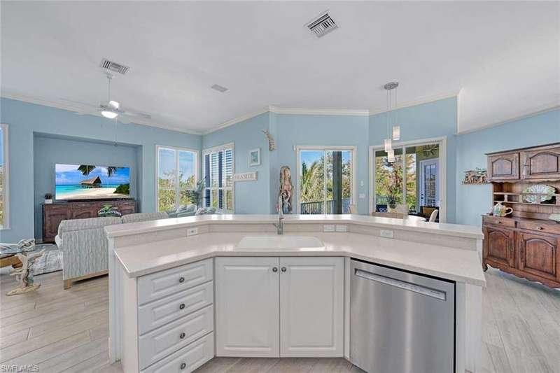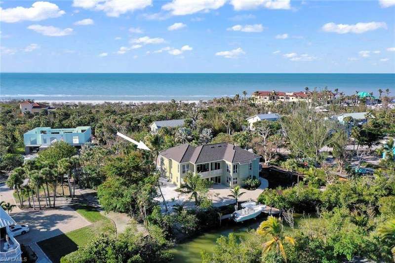 Boaters and beach lovers - this is THE ONE! Welcome to Your Tropical Retreat on Sanibel Island! $100K Price increase reflects the installation of all new Marvin impact windows and doors a homeowner cost of $142K! This stunning 3-bedroom + den, direct Gulf-access home offers the ultimate in island living. Located just minutes from the Bay and the Gulf of Mexico, your private composite wood boat dock with 7.0 K lb lift sets the stage for unforgettable days on the water - whether you're boating, fishing, shelling, or simply soaking in the serene beauty of Sanibel. Just steps from the beach, you can hear the waves from your front door, while your back deck offers front-row seats to Florida's incredible wildlife - dolphins, manatees, nesting birds, and more. Perfectly positioned to capture breathtaking sunrise and sunset views, this home invites you to live in harmony with nature. Inside, you'll find a meticulously maintained and thoughtfully designed layout featuring soaring ceilings, plank tile flooring throughout, and abundant natural light. The spacious kitchen is a chef's dream - complete with modern finishes, generous counter space, and a welcoming flow for entertaining. The primary suite is a luxurious sanctuary with ample closet space, a separate soaking tub, a custom glass walk-in shower, and gorgeous quartz countertops embedded with sea shells - a true coastal touch. Each of the three bedrooms includes walk-in closets for plenty of storage, while the den offers versatility as an office, gym, or easily a fourth bedroom. A 2-car attached garage provides plenty of space for vehicles and toys, and an expansive lower-level storage/workshop area is ideal for hobbies or stowing all your gear. Built solid with concrete construction and a newer metal tile roof (2022), this home is designed to weather the elements with ease. The Seller has already paid for premium Marvin Coastline impact windows and doors, scheduled for professional installation by Sanibel Glass on December 15th - delivering peace of mind and added value. Survey available that shows outline of pool. Located on Sanibel's desirable west end, where "island time" begins, you're steps from the beach, close to over 26 miles of bike paths, and just minutes from the restaurants and shops of Captiva Island. This is more than a home - it's a lifestyle. Experience the very best of island living today.