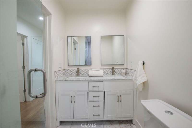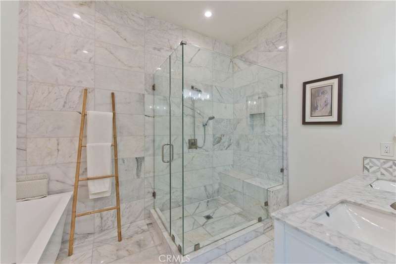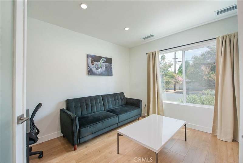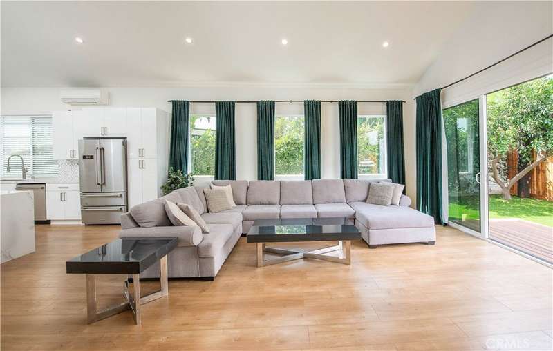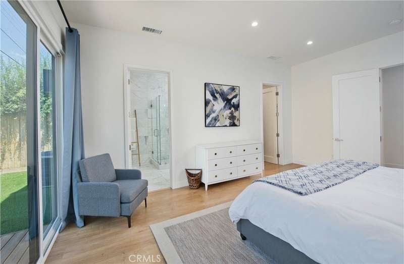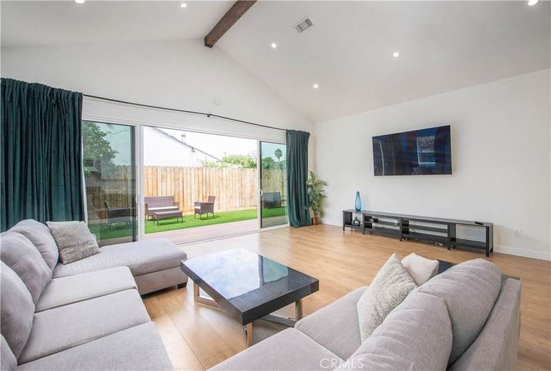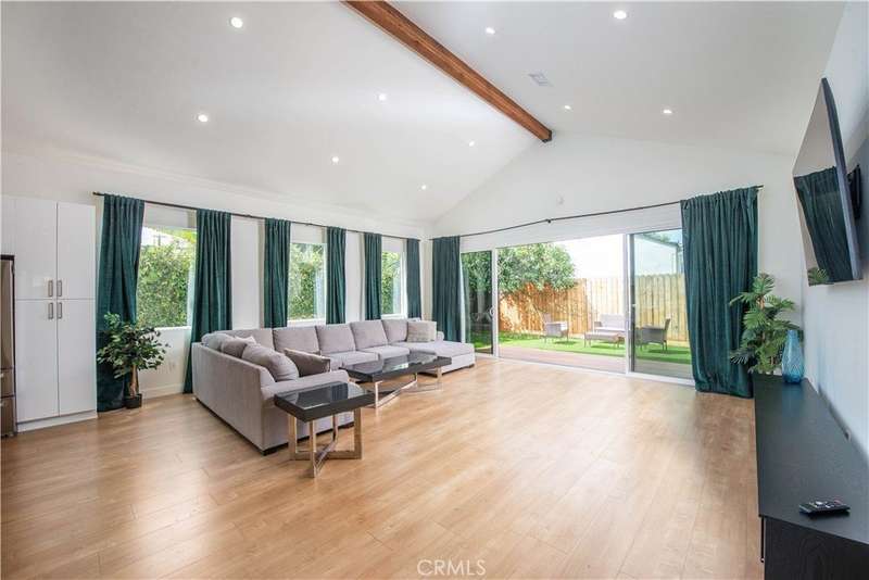 Stunning Remodeled Encino Park Home with Modern Upgrades and Energy Efficiency. Welcome to this beautifully remodeled and expanded 5-bedroom Encino Park gem, offering a seamless open floor plan flooded with natural light and highlighted by a striking exposed wood beam ceiling. From the moment you enter, you’ll be captivated by the expansive great room featuring wall-to-wall glass doors that open to a serene outdoor space. The chef’s kitchen is a showstopper — designed with quartz countertops, a spacious eat-in island with ample storage, soft-close white cabinetry, premium Thor stainless steel appliances, and a massive walk-in pantry for ultimate convenience. This home includes three generously sized bedrooms near the front of the house, accompanied by a large shared bathroom with double vanity. The luxurious primary suite is a private retreat with a walk-in closet, spa-like bathroom featuring an oversized shower, soaking tub, and dual sinks. An additional en-suite bedroom with its own walk-in closet and full bath adds flexibility for guests or extended family. Step outside to your private backyard oasis, complete with low-maintenance turf, a durable Trex deck perfect for entertaining, and lush landscaping. Enjoy energy efficiency year-round with fully owned solar panels and Tesla Powerwall batteries, keeping your electric bills low and your home powered even during outages. This move-in ready home blends comfort, luxury, and sustainability — don’t miss this rare opportunity in Encino Park!