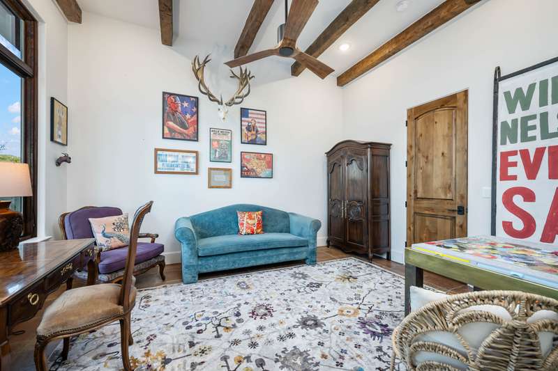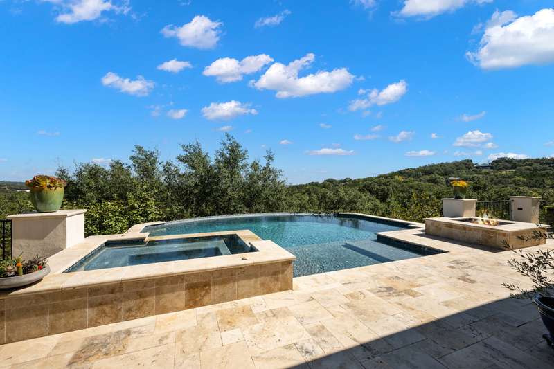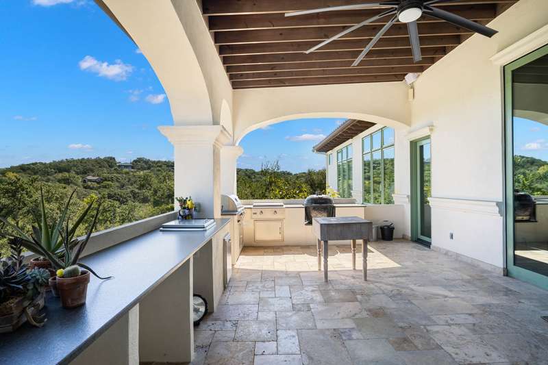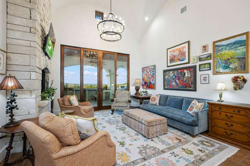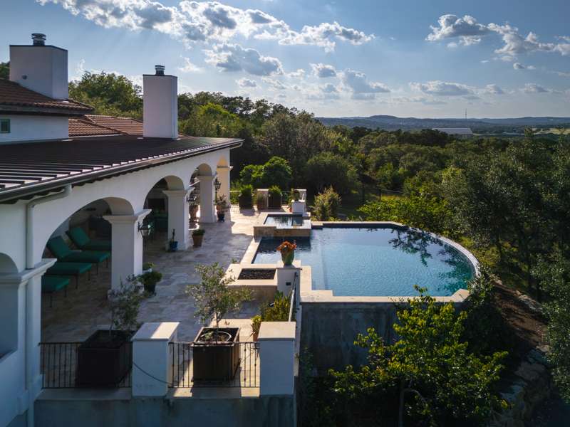 This truly one-of-a-kind property offers exclusive privacy and breathtaking views from every room. Nestled on over 16 AG exempt acres, it combines the luxury of peaceful, rural living with the convenience of being just 10 minutes from La Cantera, The Rim & I10. This home truly offers an unparalleled living experience in a private, scenic setting. Coming up the drive you are welcomed with a stunning hand-stacked rock wall which leads you to a spacious brick driveway with ample parking. From the moment you arrive, the thoughtful design and attention to detail are evident, setting the tone for the unique and unexpected experience this home has to offer. The home boasts soaring 18-foot ceilings in the main living areas, yet maintains a cozy, welcoming atmosphere. The large living room features one of the home's three fireplaces, with substantial cedar wood-beams lining the ceilings and 8-foot sliding glass doors that open up to spectacular views of the pool and surrounding landscape. The entryway and kitchen area are adorned with gorgeous, hand-trauled groin-vaulted ceilings, adding timeless architecture. Off the kitchen and family room, you'll find another fireplace surrounded by stacked rock, creating a warm and inviting space. The dining room is graced with handmade, 1 of a kind, cement tiles. The expansive kitchen is perfect for entertaining, with top-of-the-line appliances, a butler's pantry, and a private bar area. The master suite is a true retreat, featuring coveted his-and-her bathrooms and closets, each designed to offer unmatched privacy. Both spaces are bathed in natural light and offer serene views of the property. It features beautiful tile that exudes a softness, inspired by the elegant charm of the Marais Rue des Rosiers. Off the master suite, you'll find a charming study, complete with custom built-in cabinets and a beautifully crafted wood-beamed ceiling. On the other side of the home, there are three additional bedrooms, each with ensuite bathrooms and continuous views. Step outside to discover the incredible 1,200+ square-foot patio with an outdoor living area, fireplace and featuring a sparkling pool with an adjoining spa and a fantastic outdoor kitchen-perfect for dining, entertaining, and savoring the peaceful, picturesque surroundings. Tucked away off the patio is a true gardener's dream: a private garden room & protected exterior garden house. Inviting, understated, and truly one of a kind, this property will be one that you will want to see. - 10/2/2025 3:15:20 AM
