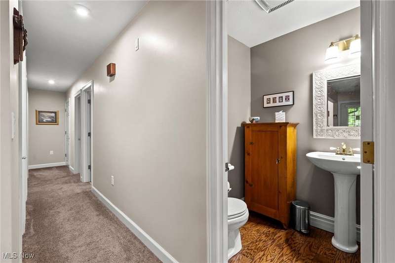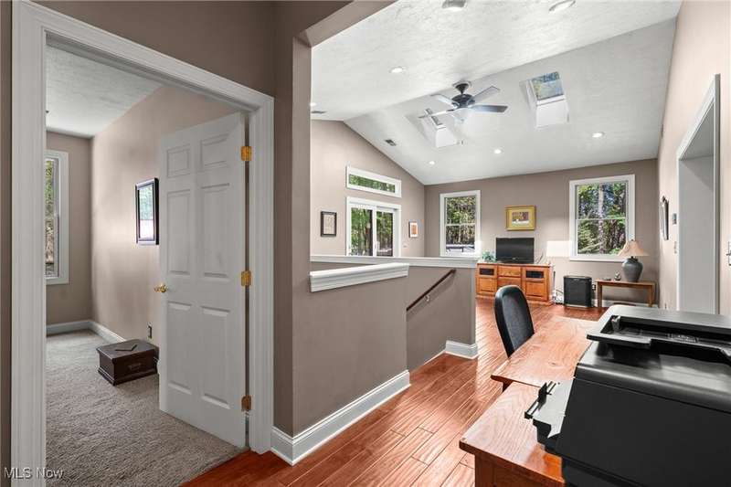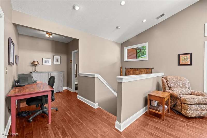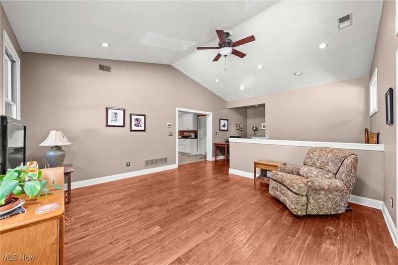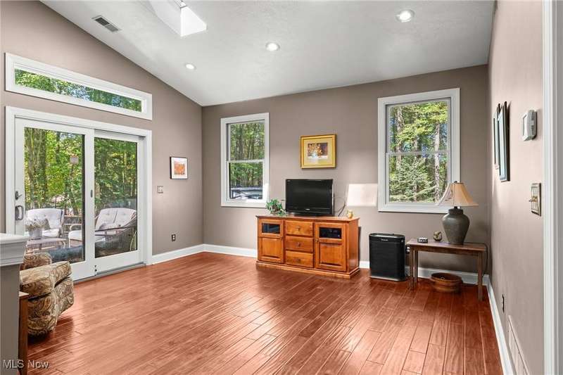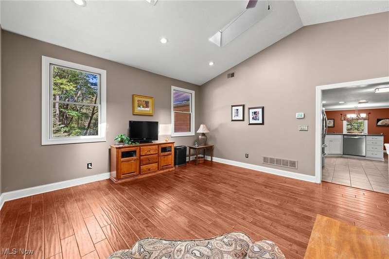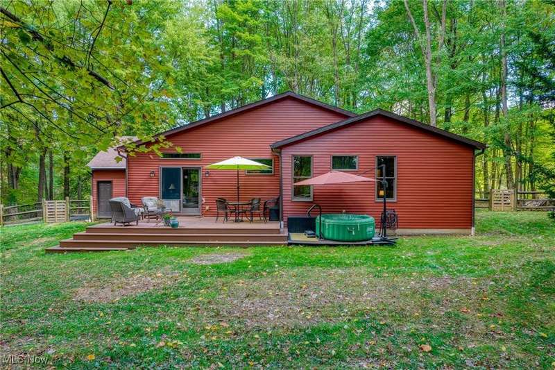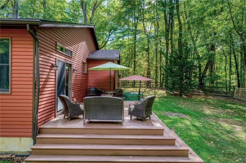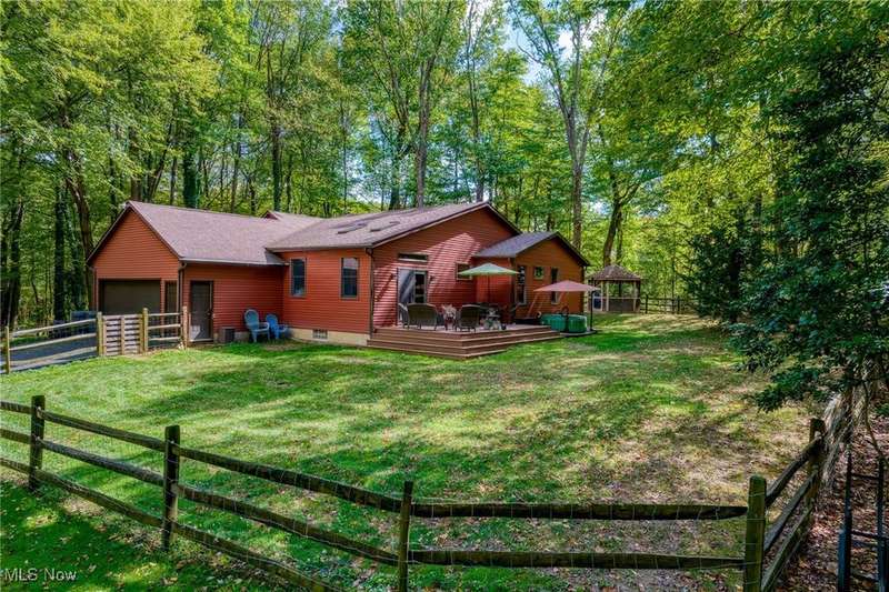 Complete privacy is what you will find when you arrive at the top of the driveway of this serene 1.74-acre lot. Surrounded by trees and tasteful landscaping, this handsome home was completely transformed in 2009. What was once a 2-bedroom home is now a spacious 3-bedroom home with 2290 square feet of living space. The addition included a family room, office nook, primary suite with attached bath and dual walk-in closets and a tidy basement for added storage. The result is an open floorplan that also allows privacy for everyone under its roof. Right in the middle of the action between the family room and the dining room, the modern kitchen boasts granite countertops, a breakfast bar, an oversized pantry and updated appliances. The sunken living room is in the original part of the home. This light filled room has vaulted ceilings, skylights and a brick fireplace as a focal point. Gleaming wood floors make this room feel warm and inviting. Two bedrooms are down the hall. The larger bedroom has a walk-in closet and private access to the shared bath. A guest bath is right off of the kitchen. The hallway's superpower is storage. Three closets for storage and one for laundry will help keep you organized. The family room is a casual spot for relaxing. Something about the large windows, skylights, vaulted ceilings and sliding doors to the deck makes this room feel like a sunroom. It is open and spacious and bright. An office nook sits right outside of the primary suite. This suite offers a private retreat from the rest of the house. Take a hot bath in the jetted tub or jump in the separate shower. Two walk-in closets provide ample space for all of your clothes. The exterior of this home is all about fun. The deck and fenced-in backyard is the place to entertain, but this wooded lot is for exploring. The firepit area, gazebo, sheds and surrounding woods provide plenty of reasons to be outside. This tranquil retreat is minutes from KSU and I-76, so your commute is a breeze.