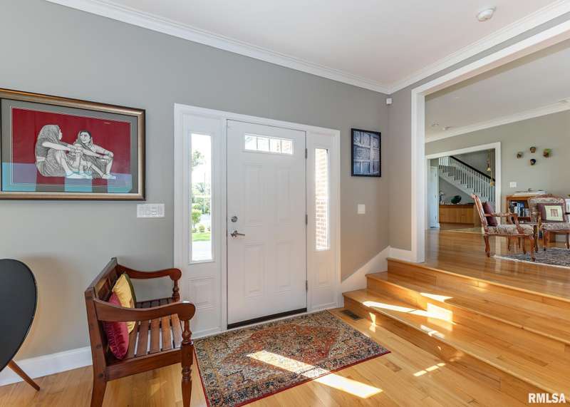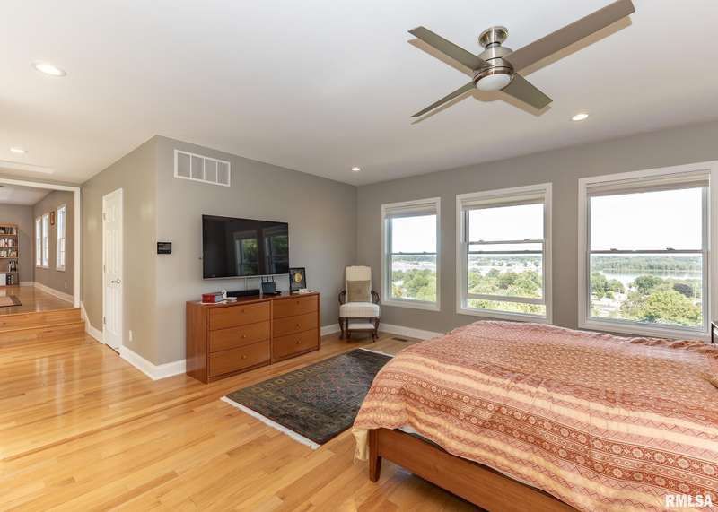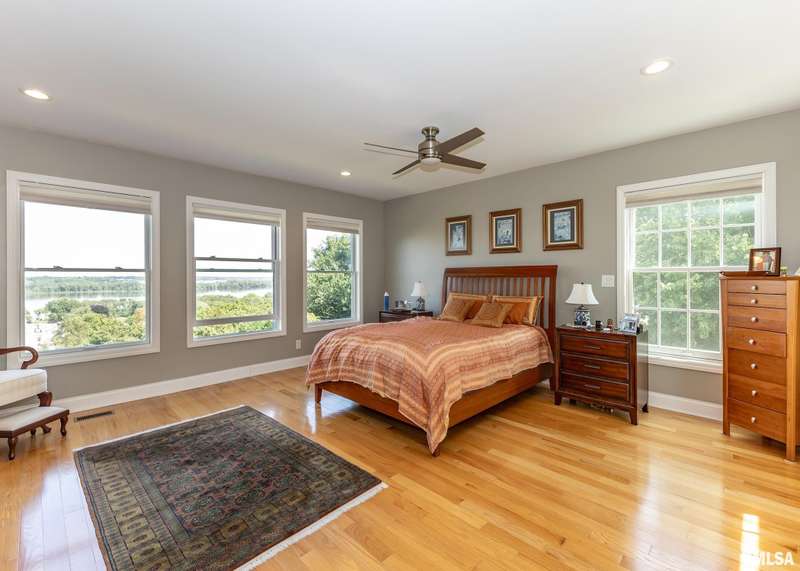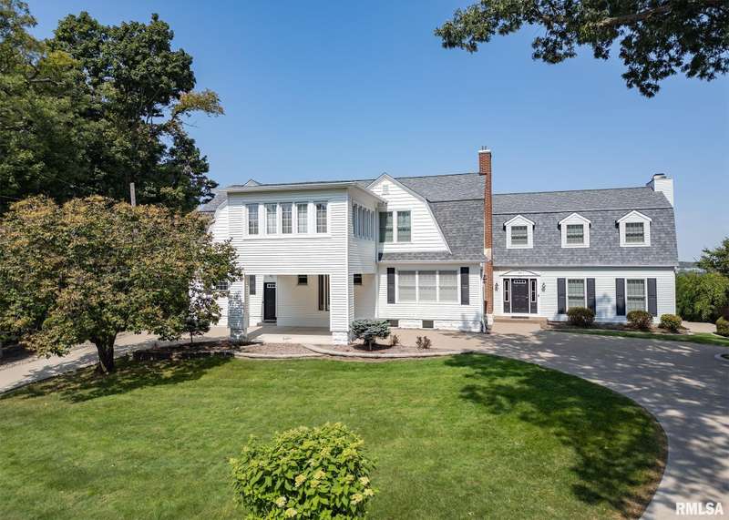 High up on the bluff, with panoramic views of the Mississippi River. Why postpone happiness? This one-of-a-kind, era 1920 home, features all the great amenities, for todays lifestyle. 3 bedrooms, private hallway to the primary bedroom suite with full bath, 2 walk in closets. Beautiful kitchen, cherry cabinetry and granite countertops. Large gathering island large eat in dining area. Formal dining opens up to the sweet, sitting room & grand staircase! Updated Hardwood floors, throughout the entire home. Main floor family room with fireplace, walk out to the Trex deck. Also the additional covered deck, to the private, nicely landscaped, also includes irrigation on the front manicured lawn. You will appreciate the circular drive, 3 car garage. Full basement, great storage and nice epoxy floors. There is a full backup Generac generator (22 kilowatt) as well.