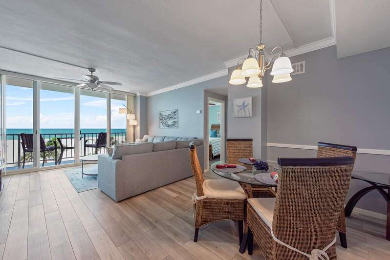 Enjoy stunning west-facing beach views from this beautifully updated 2-bedroom, 2-bath condo located on the 6th floor of the desirable Admiralty House! This light-filled unit features impact-resistant windows and sliders, offering both peace of mind and energy efficiency. The kitchen and both bathrooms have been tastefully renovated, showcasing modern finishes and thoughtful design. Offered furnished with some exclusions, this move-in-ready condo is just minutes from Marco Island's top dining and shopping spots. Admiralty House offers resort-style amenities including a beachfront pool, tennis courts, and private beach access. This property can also serve as a fantastic investment opportunity, with 30-day minimum rentals allowed - perfect for seasonal use or generating rental income.