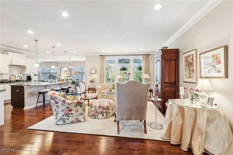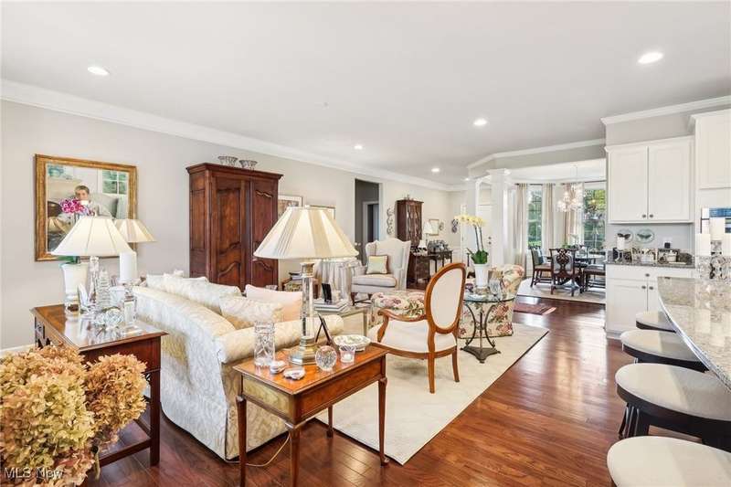 Located in the prestigious Barrington Estates, Clubside Manor, this exceptional freestanding cluster home offers refined living in one of Cleveland's most sought-after east side communities. Beautifully maintained and thoughtfully appointed, this residence embodies comfort, sophistication, and effortless living. The main level features an expansive great room, elegant dining room, inviting hearth room with gas fireplace, and a chef's kitchen complete with an oversized breakfast bar and additional dining space ? perfect for entertaining or everyday living. The first-floor primary suite impresses with a glamour bath, oversized, walk in closet, and serene views of the professionally designed gardens and private patio. A second bedroom, full bath, laundry room, and versatile flex room/home office complete the first floor. Upstairs, a spacious loft leads to a private guest suite with a large bedroom, full bath, and walk-in closet ? ideal for visitors or extended stays. High-end upgrades throughout include gleaming hardwood floors, newer appliances, and a premium polyaspartic garage floor. Outdoor spaces are equally impressive with professionally landscaped gardens, covered front and rear porches, and a charming private patio. The HOA provides exceptional value, covering lawn care with irrigation, snow and trash removal, roof and driveway replacement, and exterior painting ? most recently completed in June 2024. This is truly a move-in ready home ? the perfect blend of luxury, comfort, and low-maintenance living.