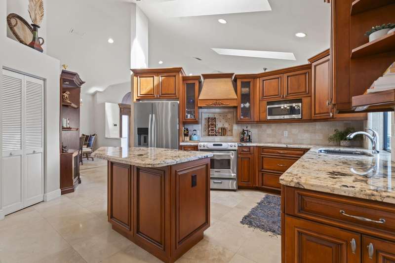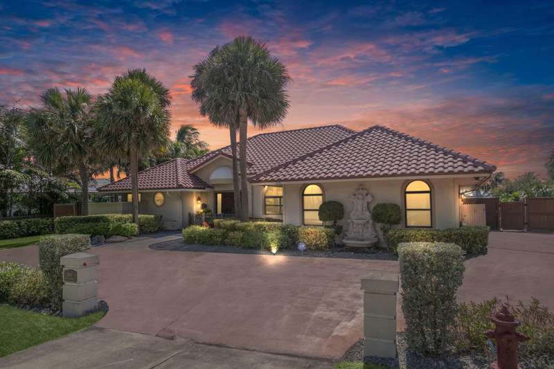 Steps from Singer Island's gorgeous beaches, this waterfront gem offers wide canal and Intracoastal views, 90+ feet of deep-water frontage, and no fixed bridges, ideal for boaters. The 3BR/3BA/2 Car Garage home features 14'6'' vaulted ceilings, travertine marble floors, custom cabinetry, and a chef's kitchen with granite countertops, stainless appliances, and a copper range hood. Enjoy water views from nearly every room, a heated pool, 64' dock, 14k lb lift, and a large covered patio with cabana bath. Located across from Ocean Reef State Park and minutes to Peanut Island, Palm Beach Inlet, upscale shopping and fine dining. Live the best of coastal Florida in total privacy and comfort. Concrete Tile Roof 2014, Newer AC's, Recent $30k in dock & seawall maintenance done. Low HOA! Direct