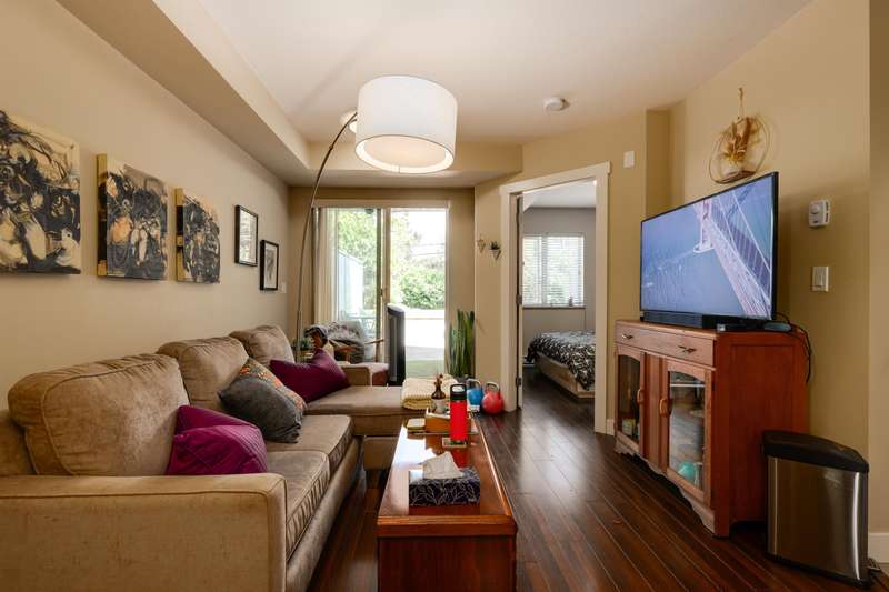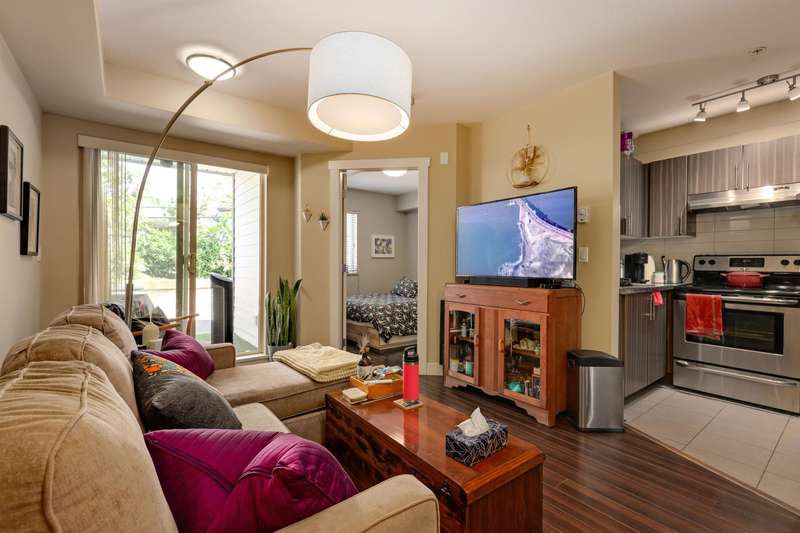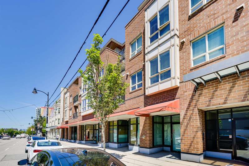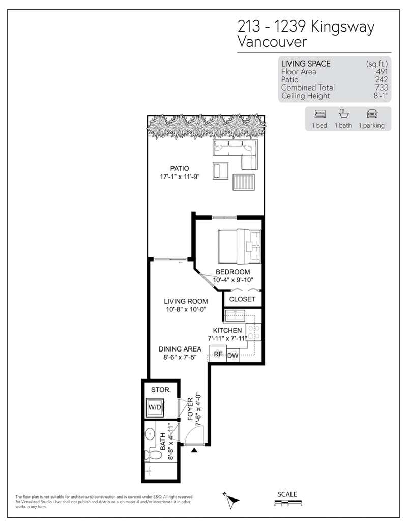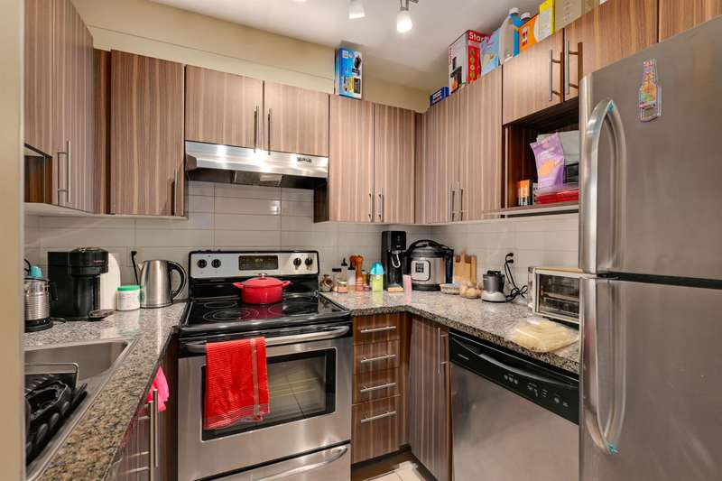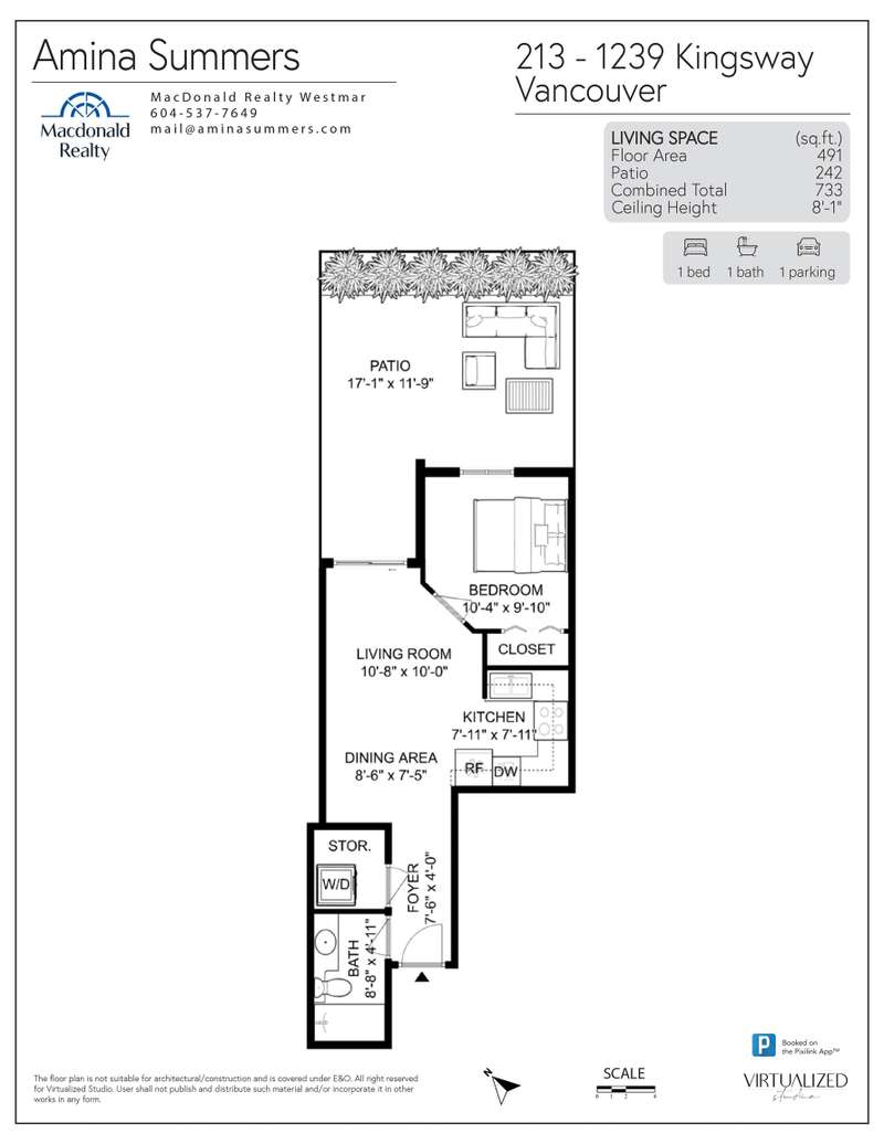 Welcome to The Kingwood Village located on Kingsway & 2 blocks west of Knight. This 1-bedroom home, on quiet side of the building, features an open concept kitchen, dining, & living space that opens up to a huge, 242 sq ft north-east facing patio – great for entertaining & includes a built-in gardening box with greeneries & providing privacy. Excellent location (95 walk score). Walking distance to public transits, grocery stores, coffee shops & restaurants. Home comes with 1 parking stall. New building next door completing 2026, adding to the ambience of the neighborhood. Rarely available, well-kept unit. Pets allowed with restrictions. View by appointment.