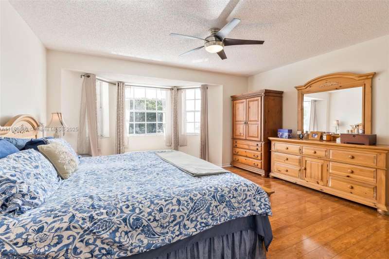 Beautiful Gem in Weston... Two-story home in the highly sought-after community of The Gables. This amazing five-bedroom, four-bath lakefront home is ready for new owners! The home just received a new plumbing upgrade ($25K), has been freshly painted, popcorn removed from the first floor, with living/dining areas featuring remote shades and high ceilings. The first floor bedroom, stairs, and second floor have wood floors. The house includes a built-in generator that can power the entire house during an outage and accordion shutters throughout. Enjoy the stunning covered and screened patio overlooking peaceful lake views. Neutral finishes throughout, house and fence freshly painted, roof just cleaned—it's a must-see! Amazing schools and friendly neighborhood!