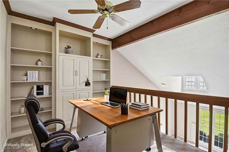 Pointing You Home to this move in ready Cape Cod located on a quiet cul de sac! Looking to downsize but not ready for a cluster home with HOA fees? Look no further! This home is spacious yet has little maintenance & no HOA fees! Fresh paint & new carpet throughout - Sept 2025! Spacious great rm w/cathedral ceiling & gas log fireplace. Formal dining area perfect for your holiday dinners! Well-equipped eat-in kitchen w/a vaulted ceiling, loads of cabinets, pantry & French doors leading out to the private backyard patio. First floor master bdrm w/a large walk-in closet and access to a full bth. Large handicapped accessible bthrm w/dual sinks & a walk-in shower! First flr laundry rm w/access to the two-car attached garage! Stately staircase leading to the 2nd flr that has a loft area w/built-in bookcases & cabinets perfect space for a home office or craft area! Two large bdrms w/big closets and steps away from the guest full bath. One bdrm has access to the large attic storage. Cozy patio area overlooking the wooded backyard. Nice tucked away neighborhood yet close to downtown Rocky River! Open House Sunday 2:30-4:30pm! Two new dormer windows - 2025, Roof (complete tear-off) - 2023, furnace & AC - 2003, paint & carpet - 2025 & hot water tank - 2020.