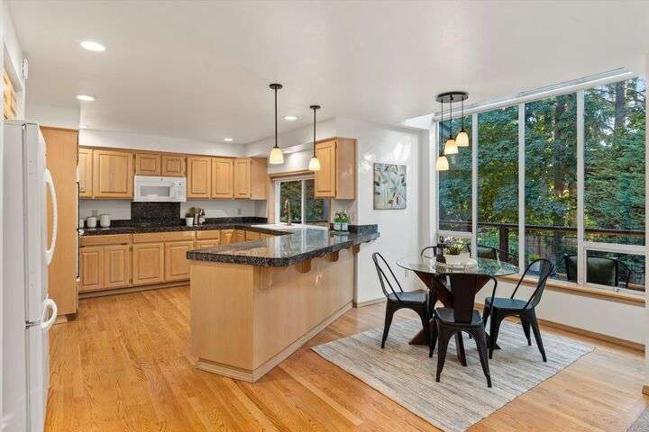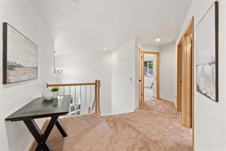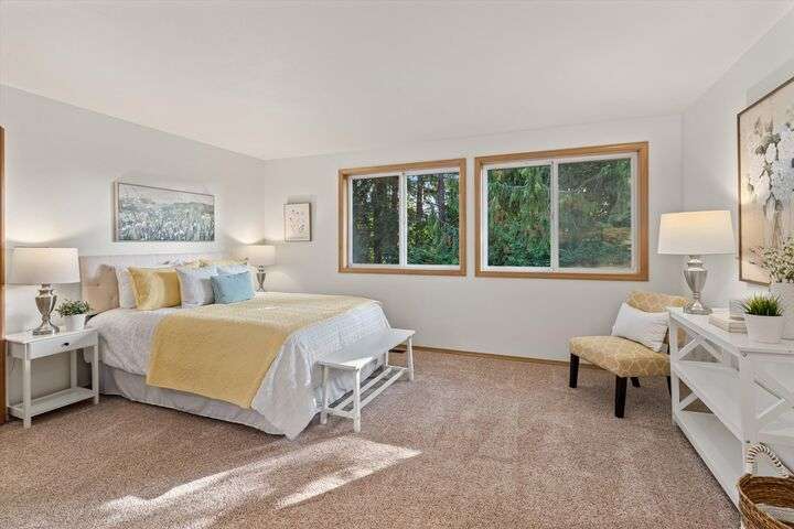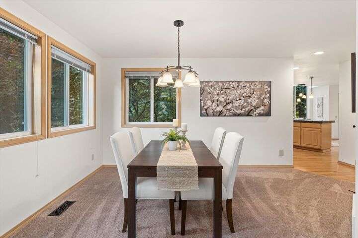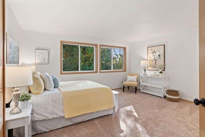 Well-maintained & improved home nestled on quiet cul-de-sac in a desirable neighborhood! Main floor has a spacious entry, office w/closet (4th bdrm option), living room w/vaulted ceiling, dining room, kitchen w/eating nook & large pantry, family room, ½ bath & utility room. Upstairs offers the primary suite w/walk-in closet & 5-piece bath, 2 more bedrooms & hall bath w/skylight. Other features include new interior paint/light fixtures/hardware, 3 gas fireplaces, newer furnace & huge walk-in crawl space w/shelving. The secluded, fully-fenced backyard boasts a deck w/hot tub for entertaining & relaxing! Ideal location near Yost Park w/tennis & pickleball courts, year-round pool, trails & more. Minutes to schools & all downtown Edmonds offers!