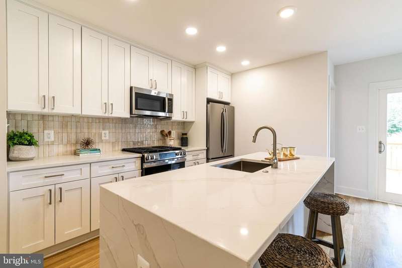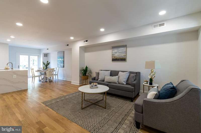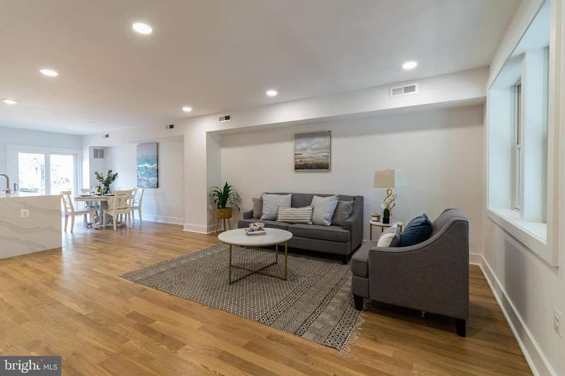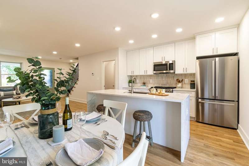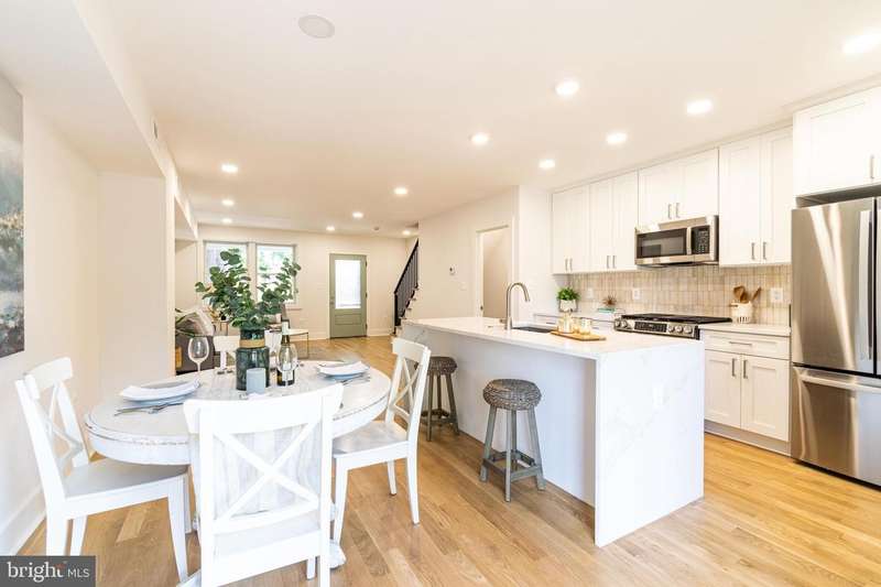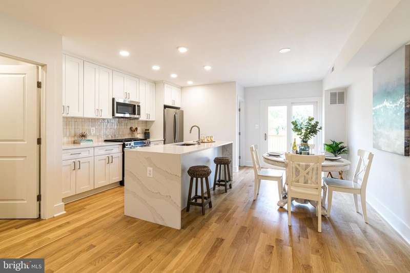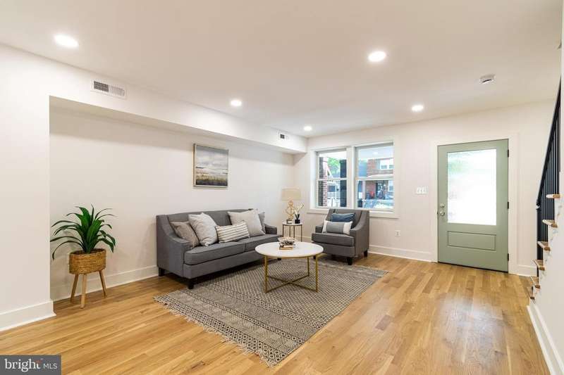 Fully remodeled turnkey home blocks from the future RFK Stadium redevelopment. 4bed 3.5 bath renovated gem with off street parking. White oak hardwood flooring greets you as enter the main living area leading to the open kitchen and dining area. The kitchen features 42-inch wall cabinets, with stainless steel appliances and a waterfall quartz island with plenty of seating. Walk out back onto a brand-new large deck overlooking the neighborhood garden. On the second level you will find your primary suite with high ceilings, a ceiling fan, and attached bathroom with a walk-in shower. The upstairs hall bath features a large soaking tub, gold fixtures, and large format tile surround on the walls. You will find two other bedrooms upstairs with hardwood flooring throughout. The Basement features a second living room area with plenty of space for entertaining, a large bedroom and a full three-piece bathroom. This home has been completely remodeled from top to bottom featuring all new Anderson Windows, new roof, all new updated electrical, plumbing, and HVAC systems. Come tour this home today and make it yours.
